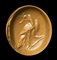 The rounded hoop with two twisted gold wires separated by a central platted wire. The shoulders ending with a small spherical bead are surmounted by a high raised bezel composed of two box-settings and set in the center of a carnelian intaglio. The scene depicts an eagle with laurel wreath in its beak. Signs of use on the surface of the stone.