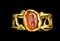 A ROMAN OPENWORKED GOLD RING WITH A CARNELIAN INTAGLIO. ANT.