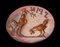 On the left, the winning rooster holds a branch in its beak; on the right side, the defeated one is in a submissive pose. Groundline. In the field, inscription "ZPIN". Wear marks.