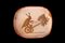 A small chariot is pulled by two butterflies and driven by a grasshopper who holds the reins. Groundline. Interesting subject referable to that category where insects, especially grasshoppers, perform human actions. The gem is rectangular with rounded edges. Small chips and wear marks. Rare.