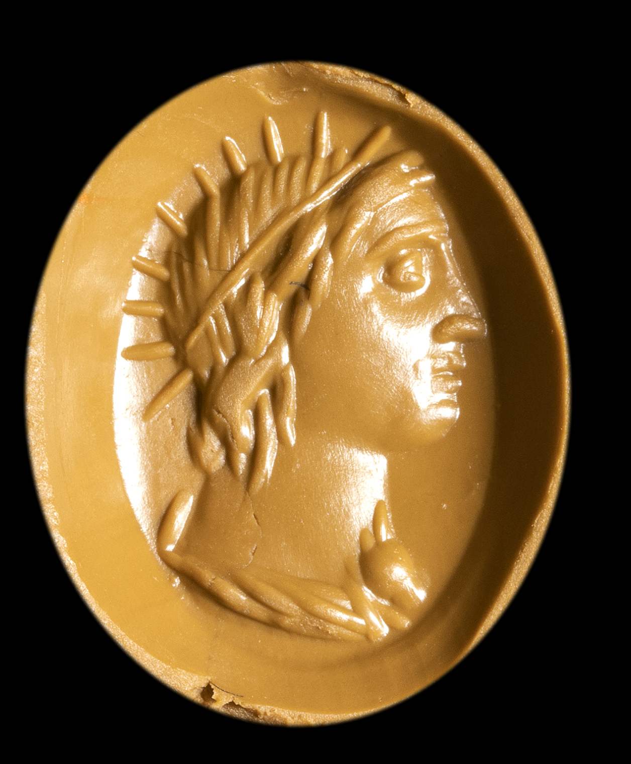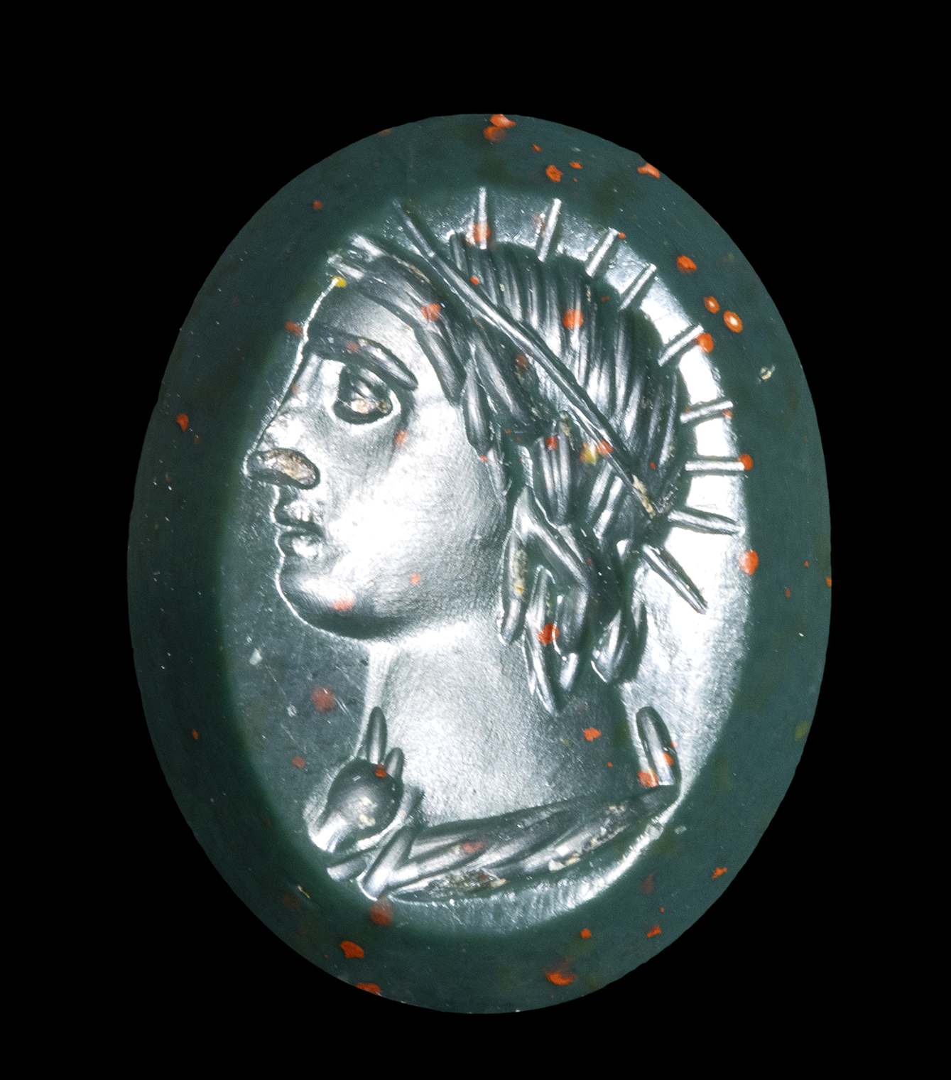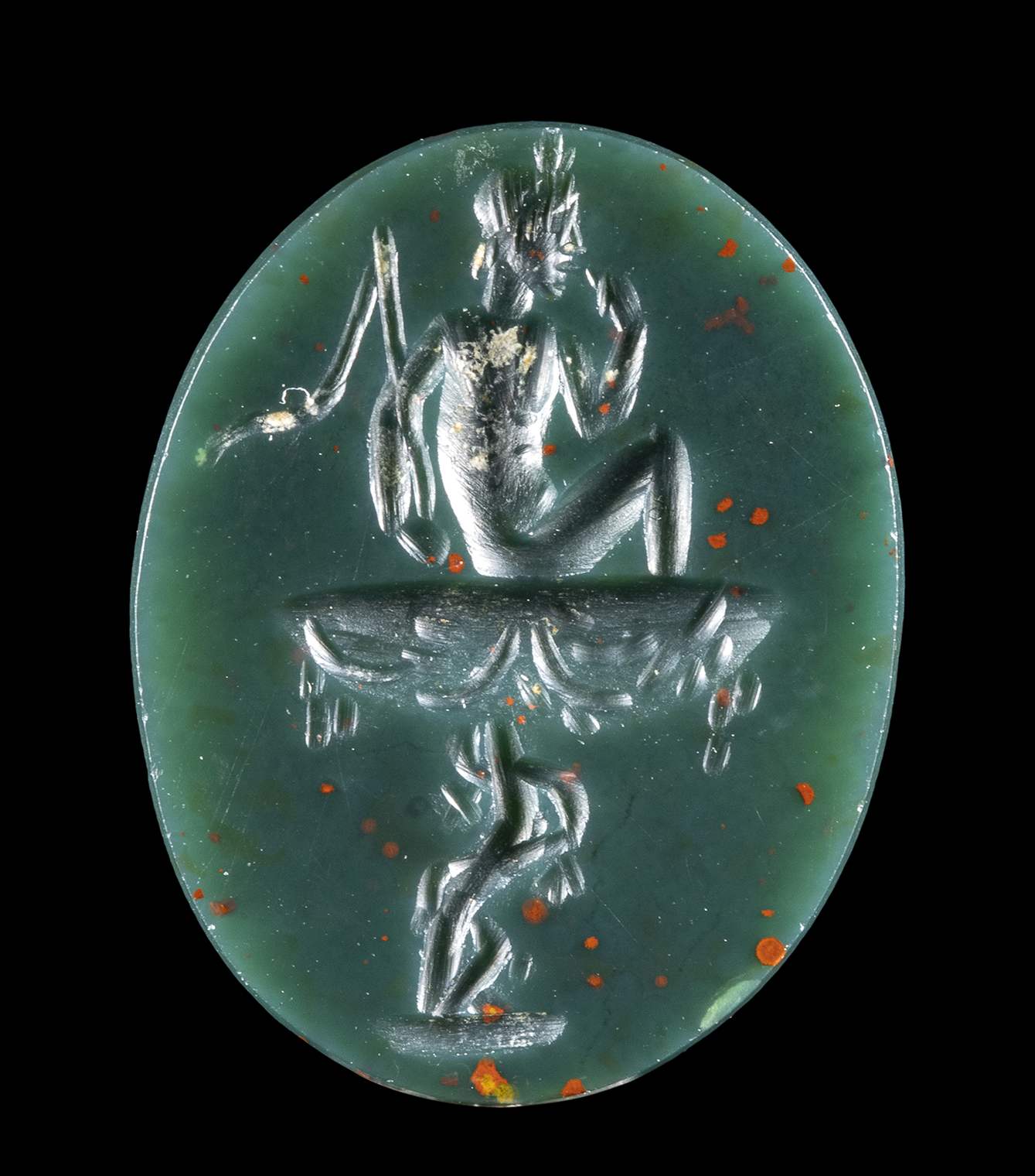 A ROMAN MAGICAL BLOODSTONE INTAGLIO. HARPOKRATES AND HELIOS.
