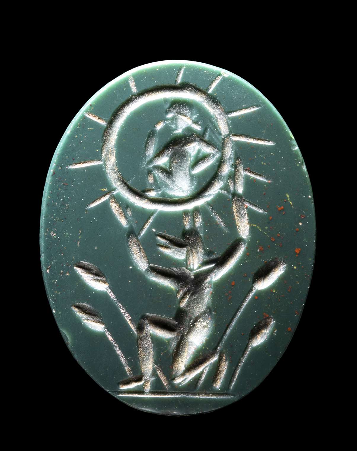 A ROMAN MAGICAL BLOODSTONE INTAGLIO. HARPOKRATES AND ANUBIS.