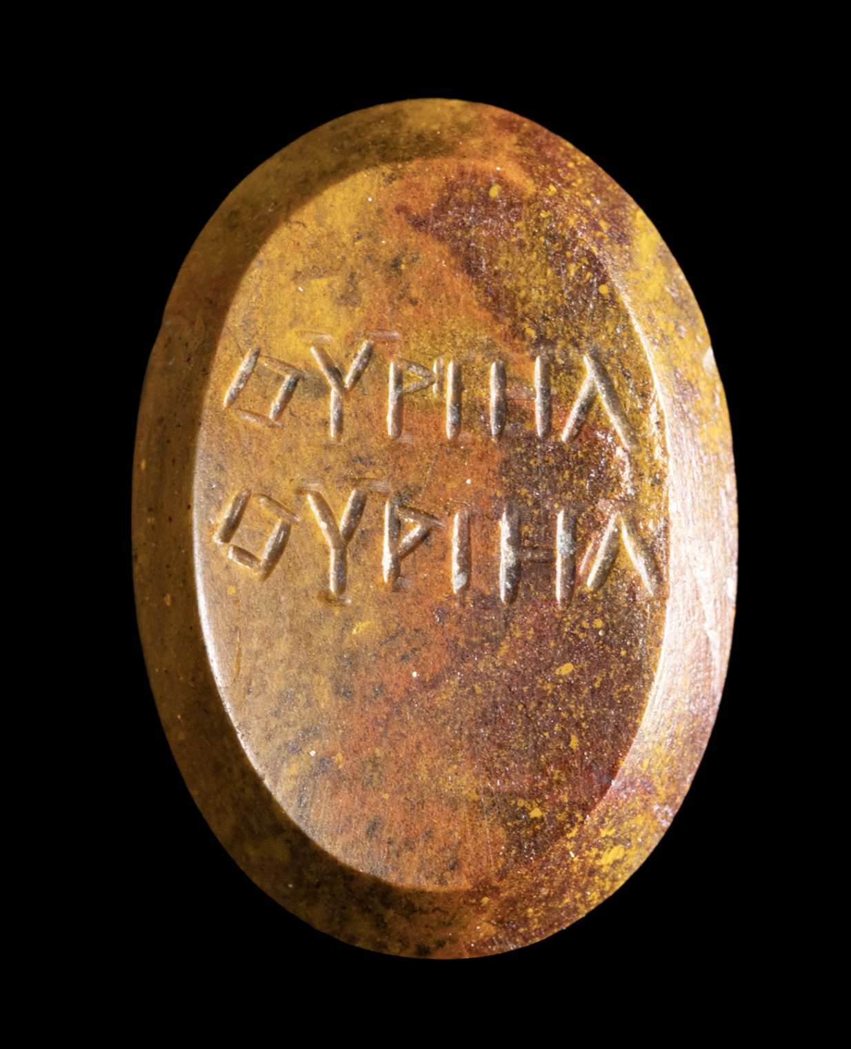 On one side, lizard with crescent moon on top, around « EKBALE », in the sense « to remove(the speck from your eye) » . On the other side « ΟΥΡΙΗΛ-ΟΥΡΙΗΛ » meaning « Uriel, Uriel ». The name of this Archangel is used on magical to invoke his recovery powers. The representation of a lizard on gnostic gems was used as protection or remedy for eyes diseases. Wear marks.