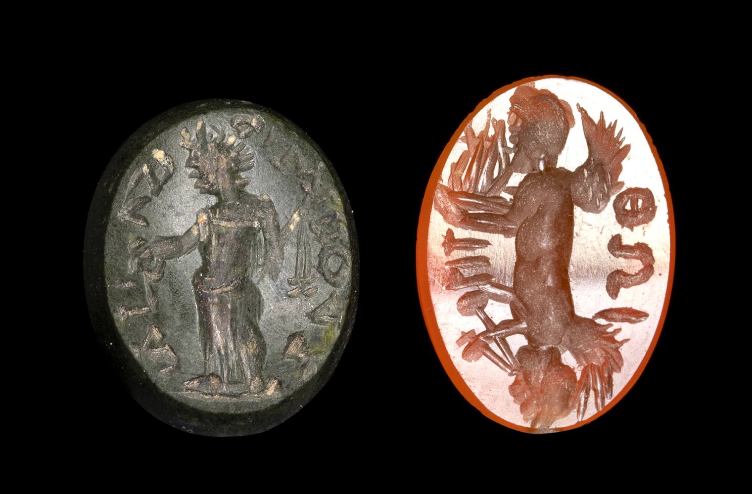 A LOT OF TWO ROMAN MAGICAL HARDSTONE INTAGLIOS.