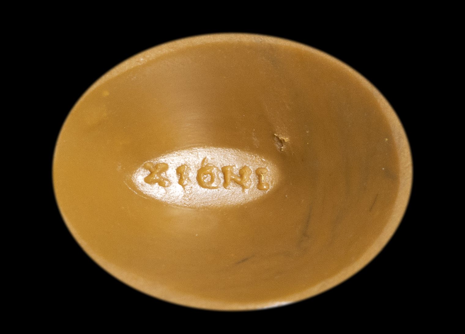 Three layered truncated conical stone, with a small retrograde inscription: INDIX. Slight wear marks.