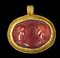 A MODERN EASTERN REVIVAL GOLD PENDANT SET WITH A LARGE CARNELIAN INTAGLIO. BUSTS OF HELIOS AND SELENE.