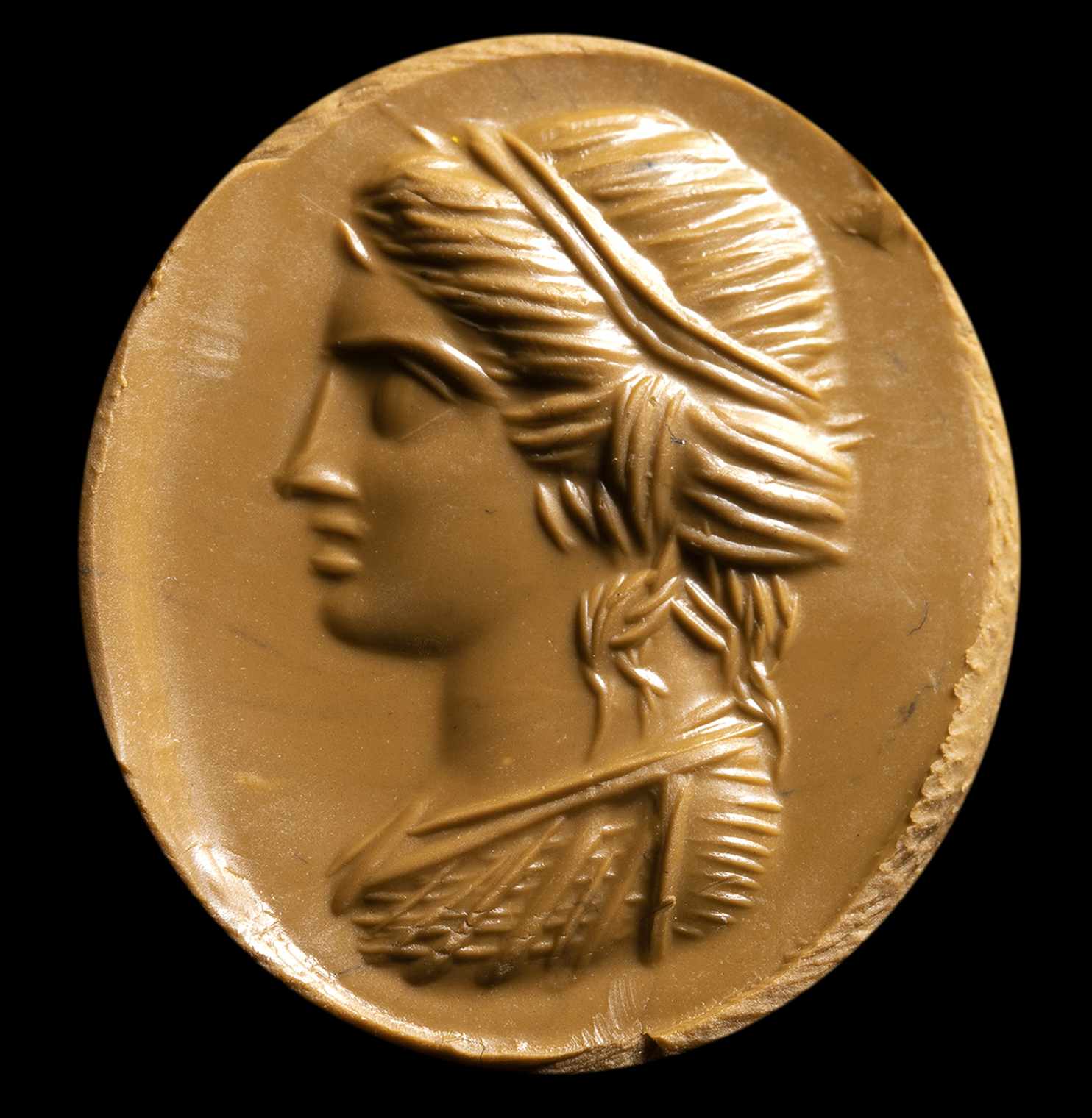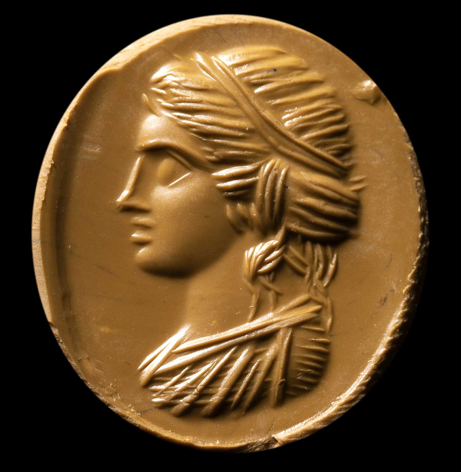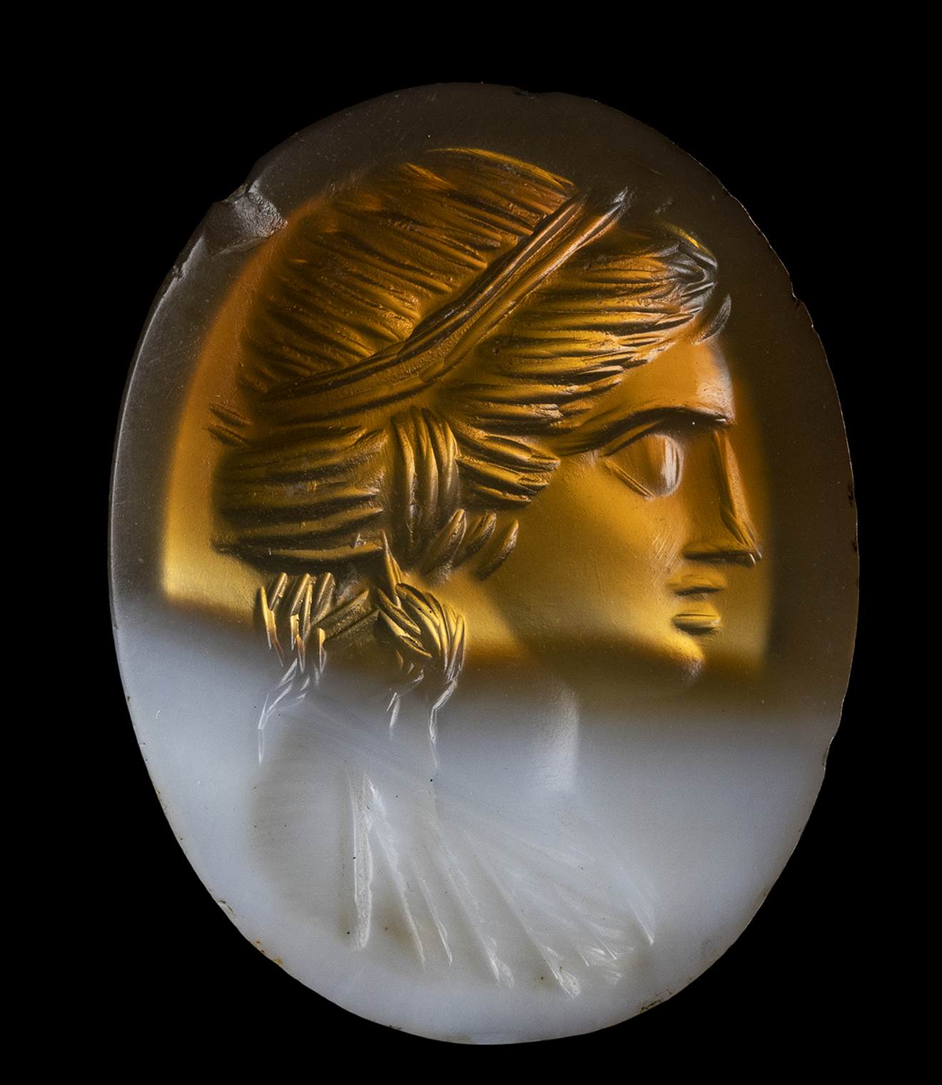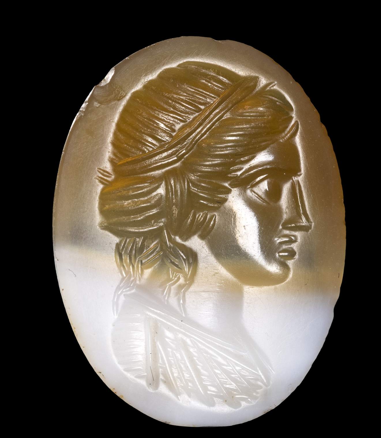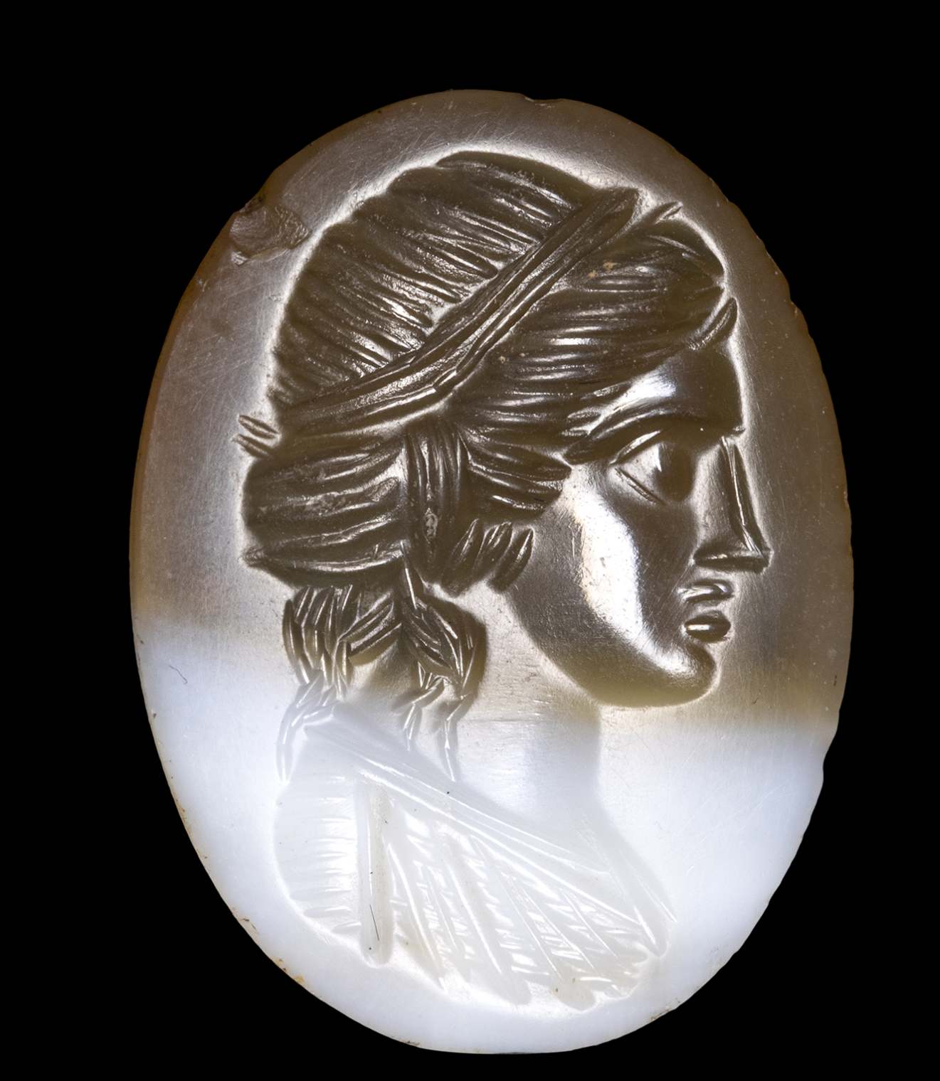 A POSTCLASSICAL PROVINCIAL BANDED AGATE INTAGLIO. FEMALE BUST.