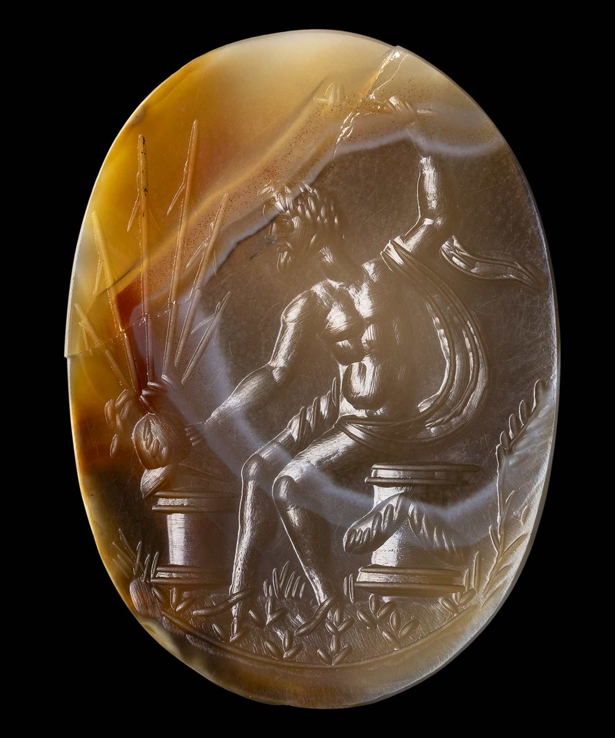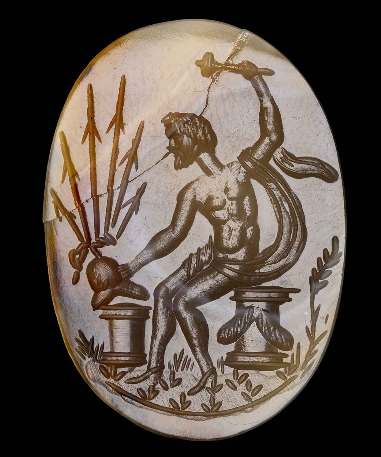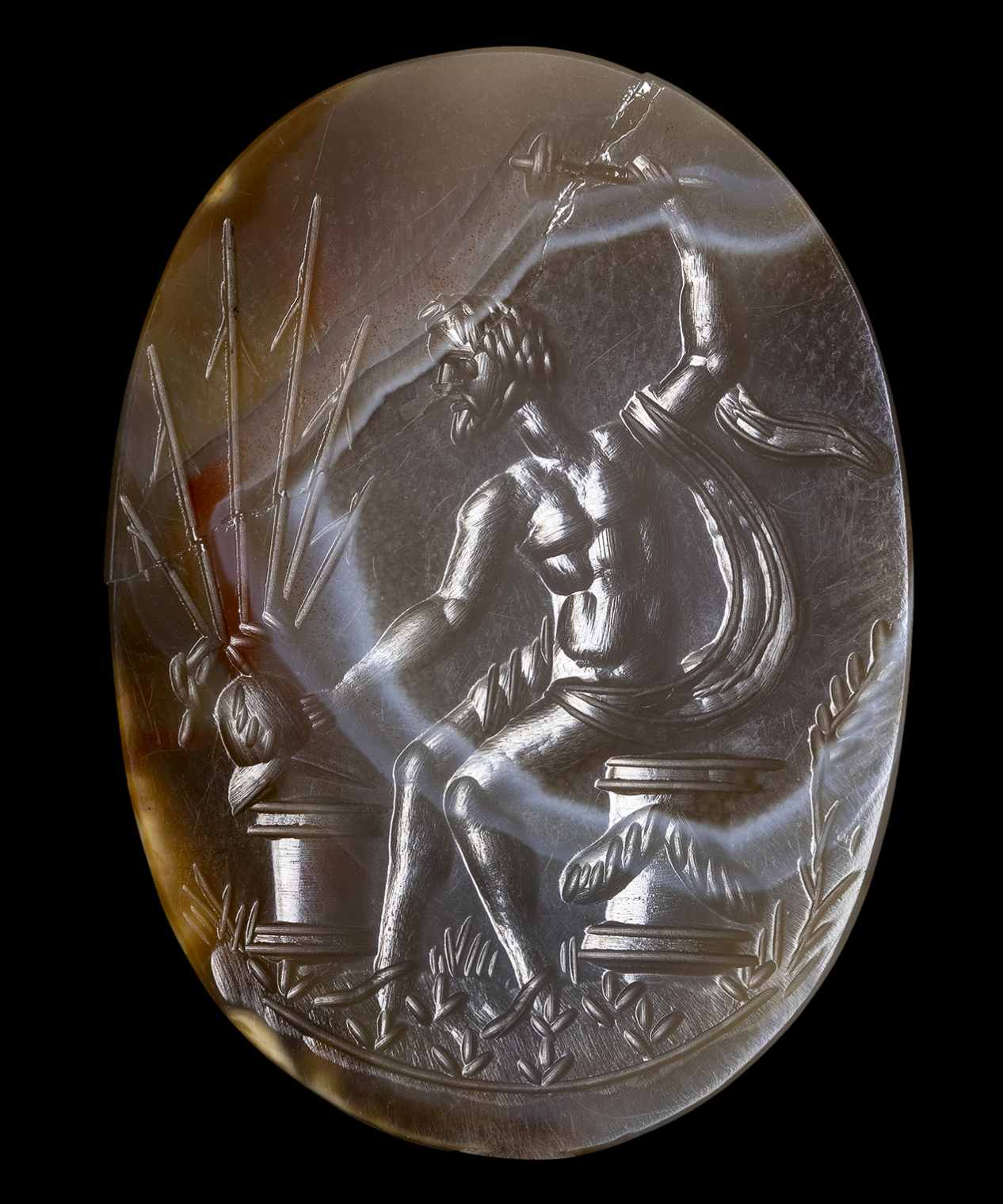 A LATE RENAISSANCE AGATE INTAGLIO. HEPHAESTUS FORGING THE WEAPONS.