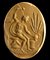 The god is shown seated on an altar at his work in the act of forging an helmet and spears. Groundline. Stone brocken in two parts. North italian atelier.