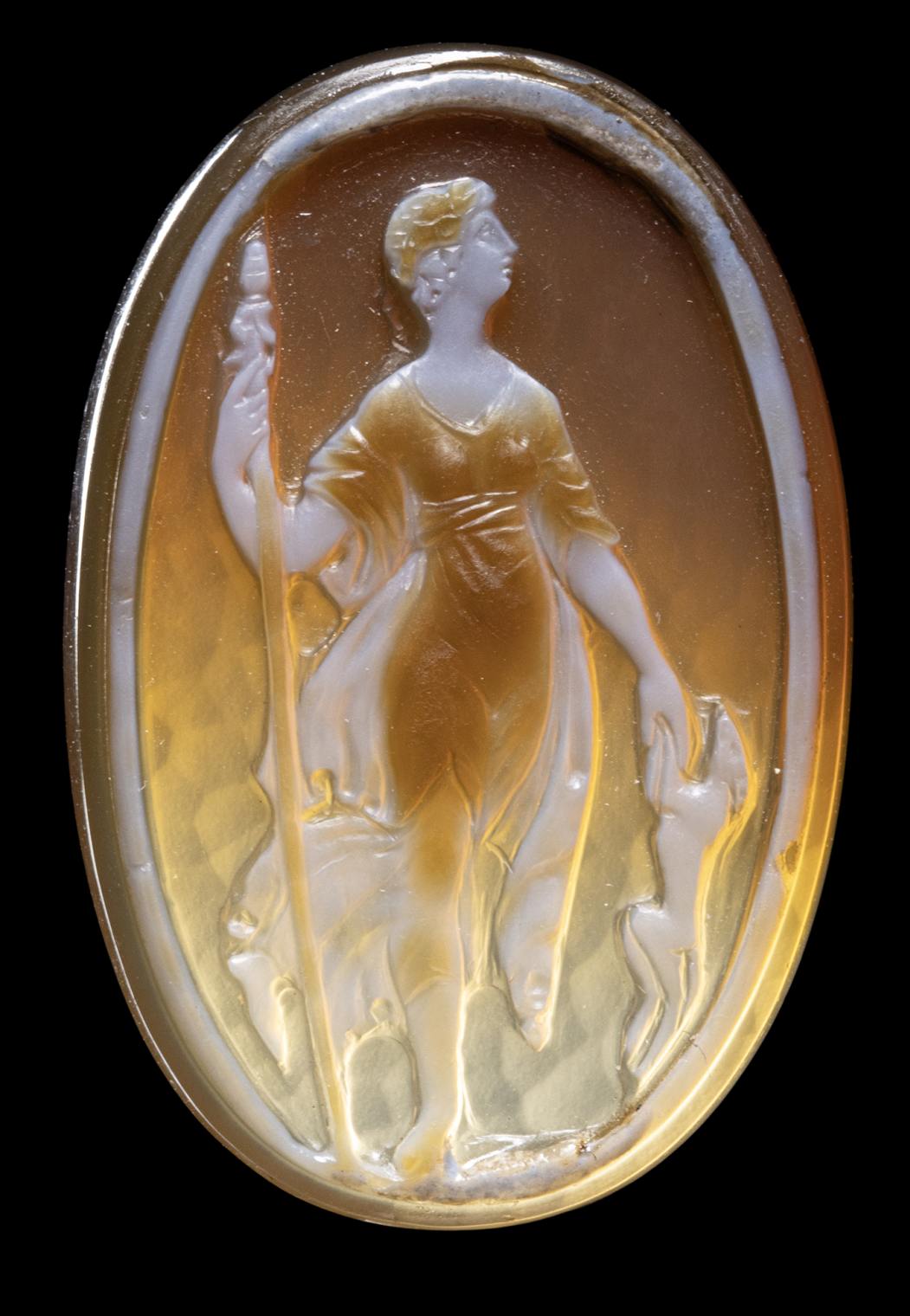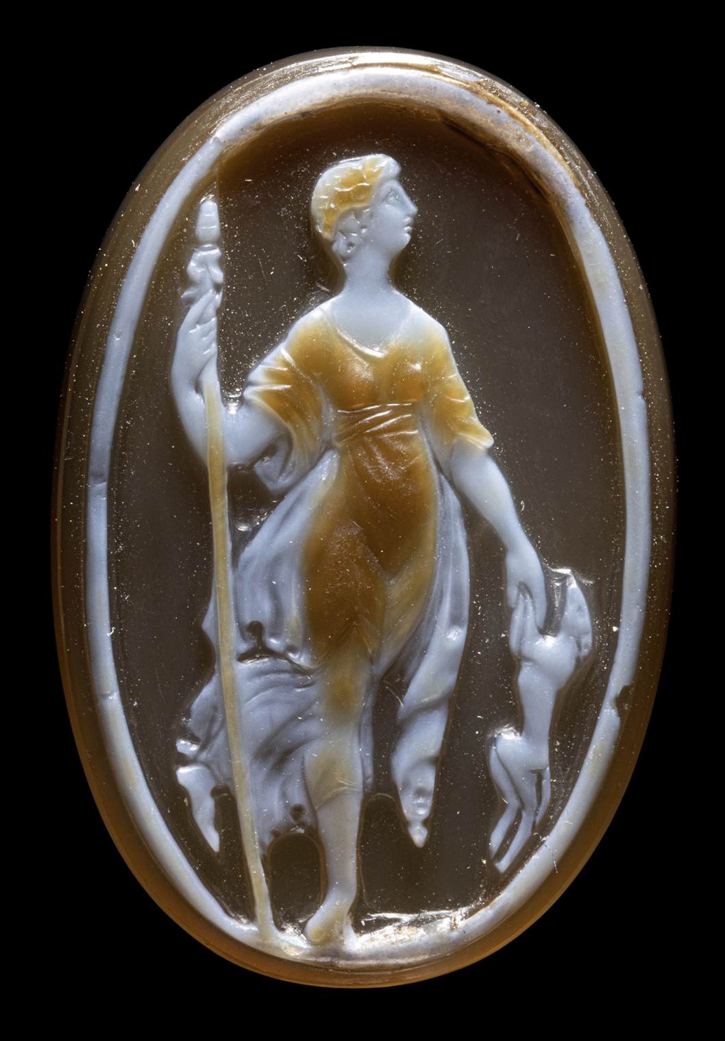 Lotto 326 | A RARE RENAISSANCE AGATE CAMEO. DANCING MAENAD WITH A PREY.
