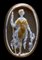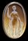 The figure is advancing to the right, with a bacchic dance step raising the left foot backwards, holding the thyrsus with the right hand, and a prey with the left. The face is turned to the right with the gaze slightly raised upwards. Her elongated body is covered by a robe with flaps floating in the air, as the ancient graeco-roman models. Around the figure, a frame in relief carved in the white layer of the agate. Interesting work, executed with great art. Minor missing and wear marks.
