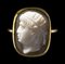 A LATE RENAISSANCE AGATE CAMEO SET IN A GOLD RING. HEAD OF A RADIATED EMPEROR.