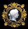AN AGATE CAMEO SET IN A ELEGANT GOLD BROOCH WITH FLOREAL ELEMENTS. BUST OF A ROMAN EMPEROR.