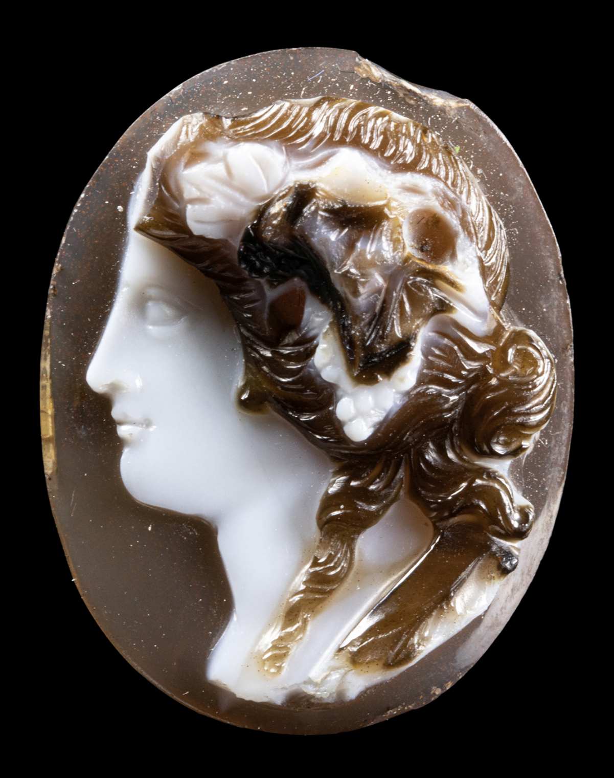 A NEOCLASSICAL AGATE CAMEO. HEAD OF A MAENAD.