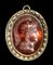 Lotto 385 | A NEOCLASSICAL GOLD PENDANT SET WITH A LARGE CARNELIAN CAMEO. HEAD OF HELMETED ATHENA.
