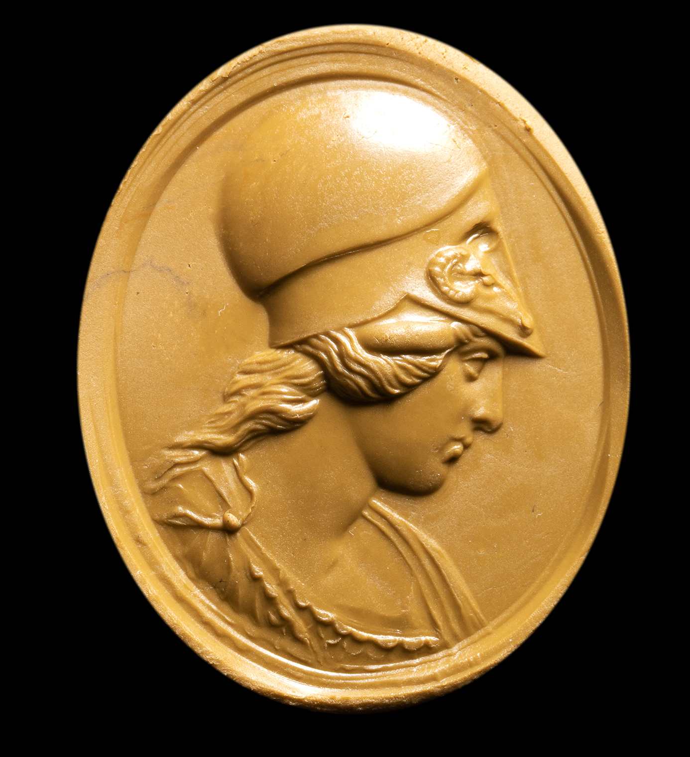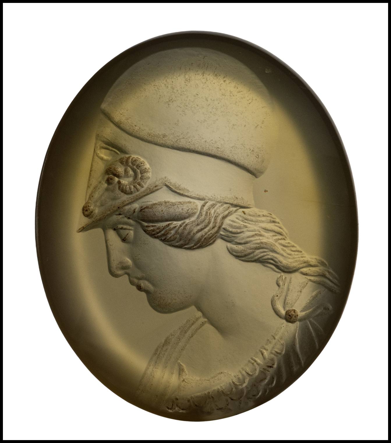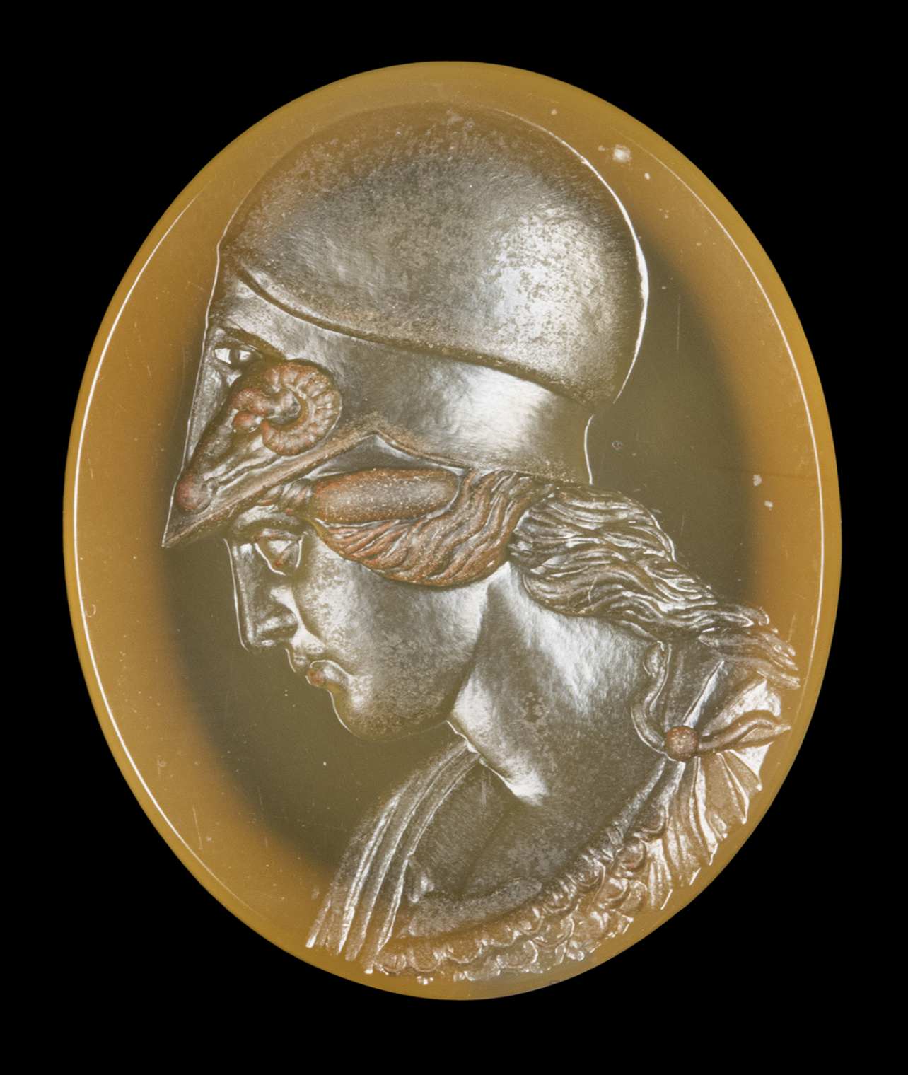 A NEOCLASSICAL AGATE INTAGLIO. BUST OF HELMETED ATHENA.