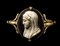 A VICTORIAN DEVOTIONAL GOLD RING SET WITH AN AGATE CAMEO. VEILED BUST OF THE VIRGIN MARY.