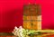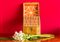 Scatola portaposate da viaggio in cuoio biondo bulinato oro