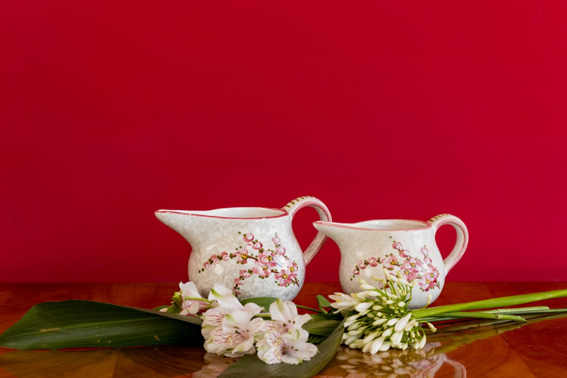 Due brocche in maiolica bianca
