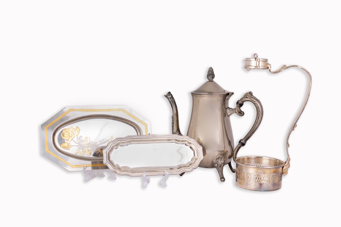 composto da una caffettiera in stile Settecentesco, due portapenne rettangolari con bordi sagomati ed un reggi bottiglia