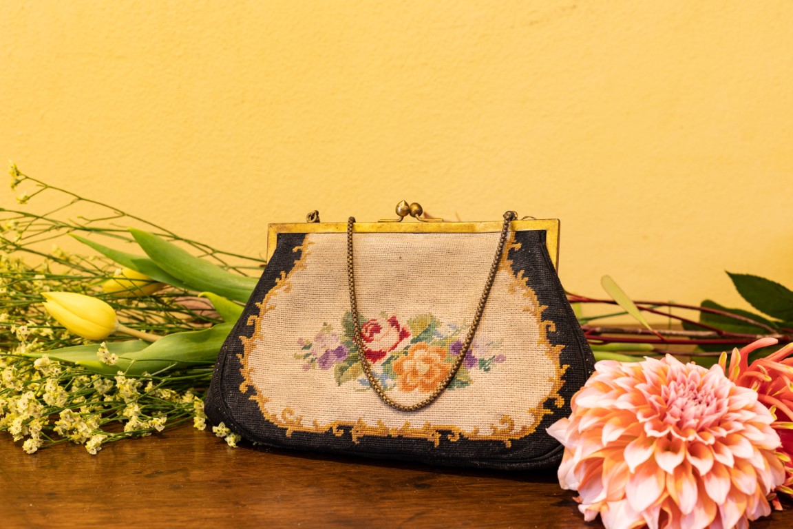Lotto 135 | Borsetta a piccolo punto con composizione floreale