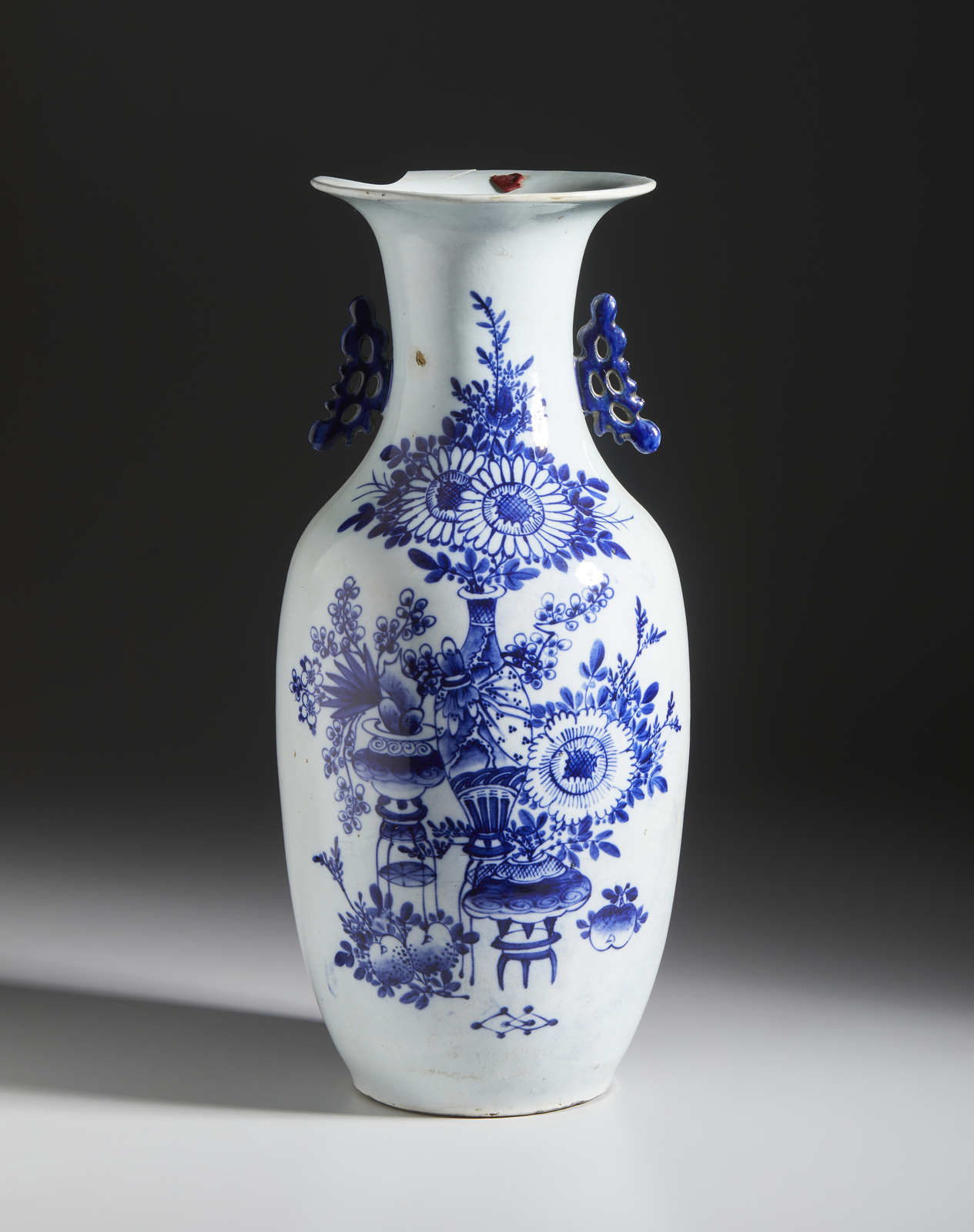 Arte Cinese - Vaso a balaustro in porcellana bianco e blu Cina, Repubblica, XX secolo .