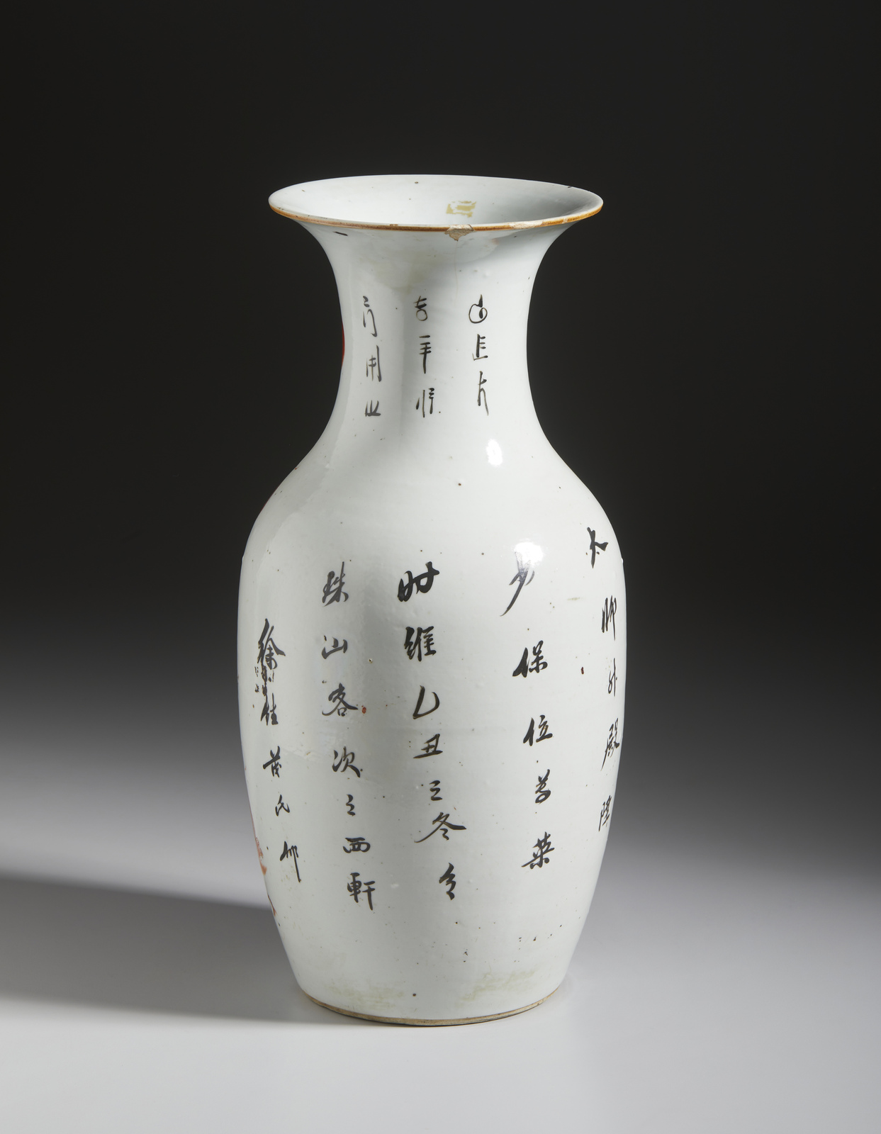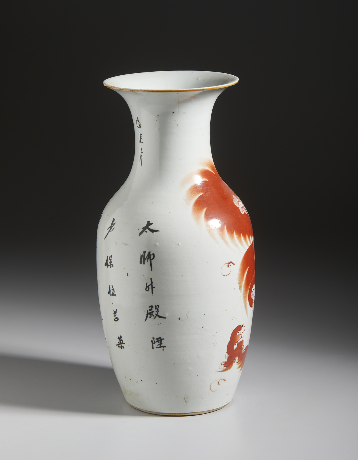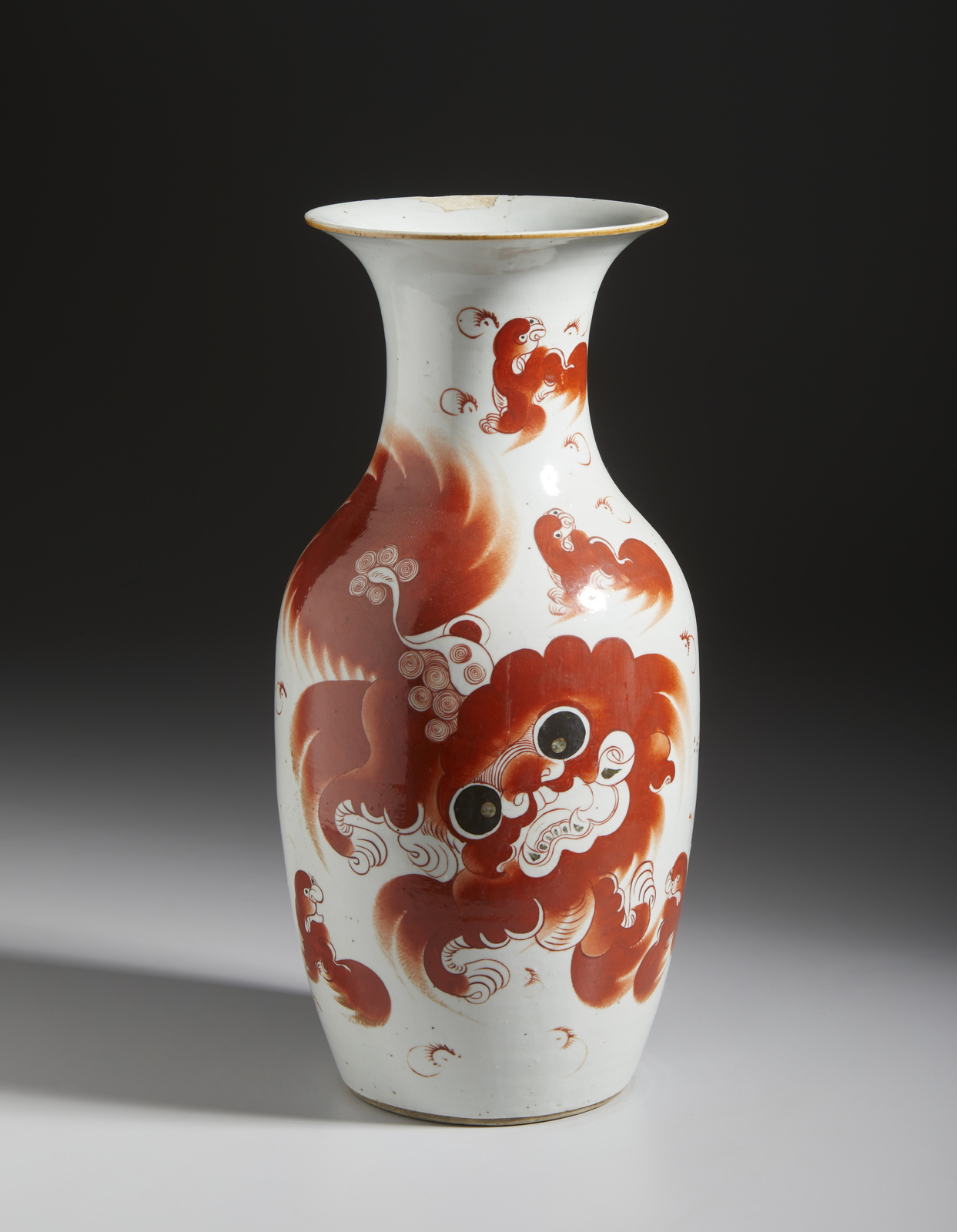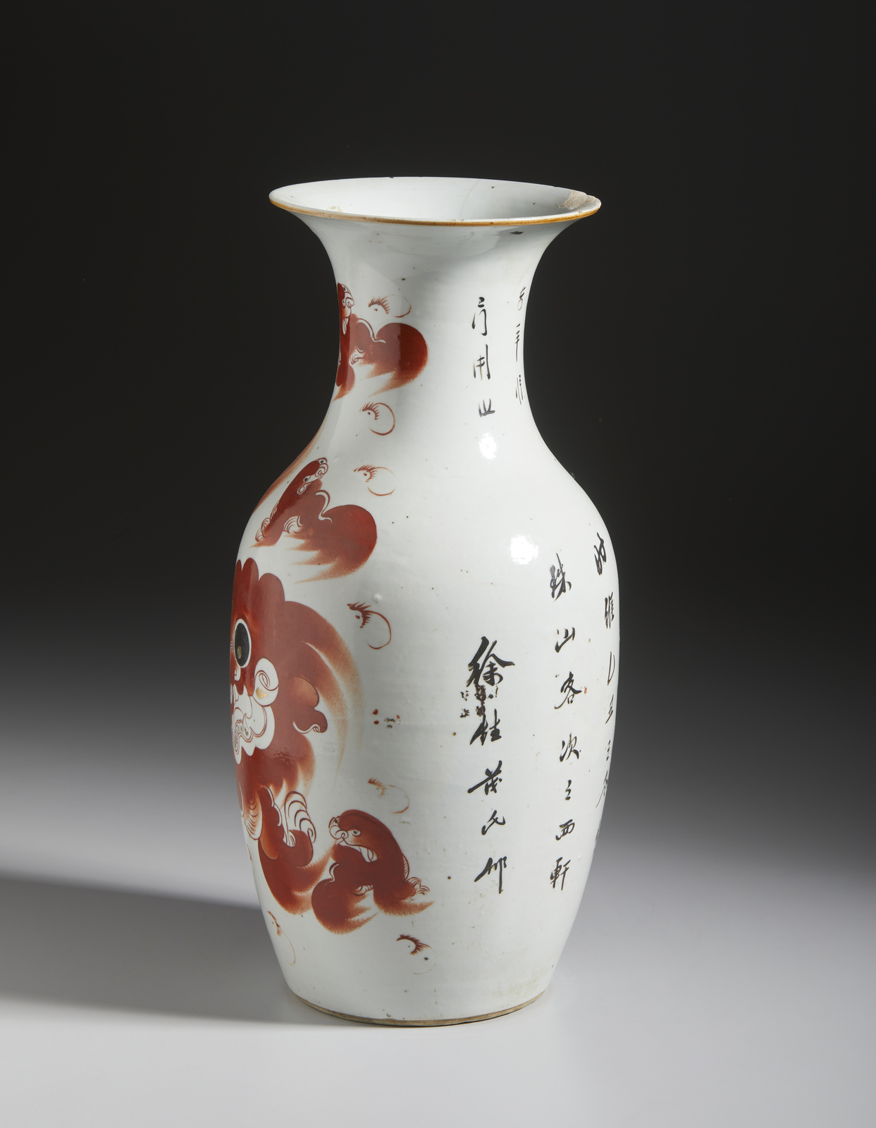 Arte Cinese - Vaso a balaustro in porcellana decorato con cane di pho Cina, XIX secolo .