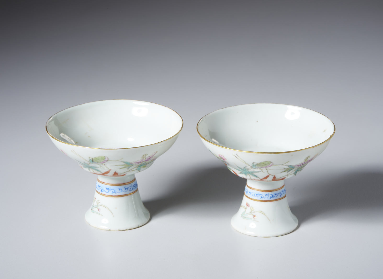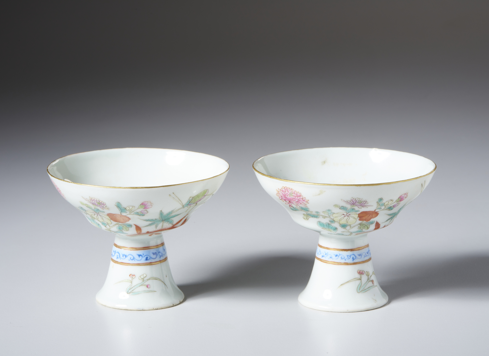 Arte Cinese - Coppia di tazze a stelo China, XX secolo .