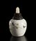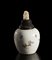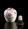 . . Cm 19,00 x 30,00. di forma ovoidale decorata a vivace policromia su fondo bianco, porta tappo traforato in legno di zitan, sormontato da importante intaglio in giada bianca di riuso.