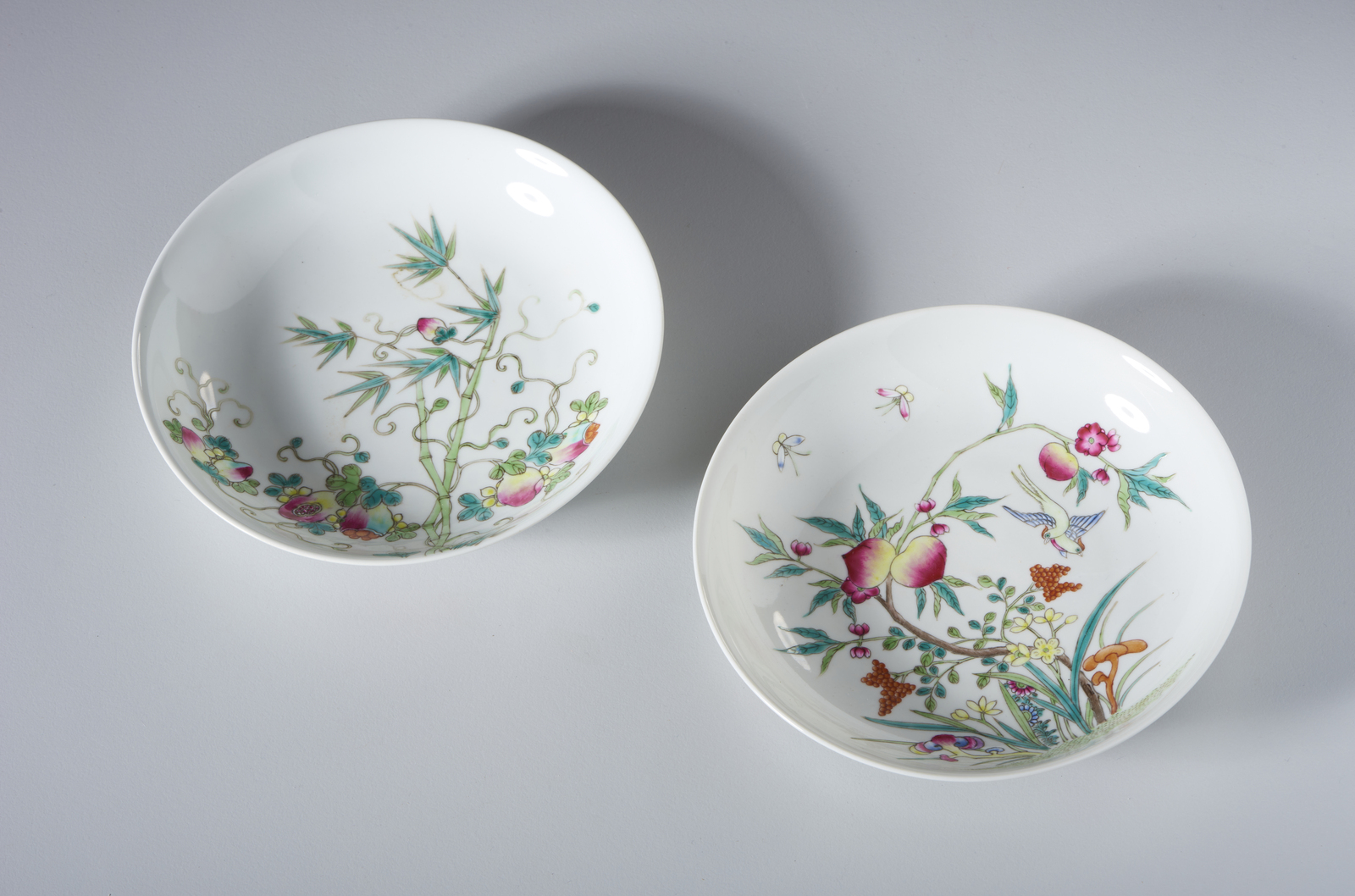 Arte Cinese - Coppia di piatti a decoro policromo. Cina, Repubblica, XX secolo. .