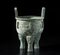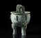 Cina, XX secolo . . Cm 24,50 x 33,50. Contenitore rituale per cibo, poggiante su tre piedi, con corpo globulare e doppia ansa verticale; decorato con fascia di tao-tie arcaiche sotto l'orlo superiore.