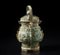 Cina, XX secolo . . Cm 16,00 x 22,00. Contenitore rituale con coperchio nello stile Shang, caratterizzato dalla decorazione con le maschere tao-tie e protomi taurine.