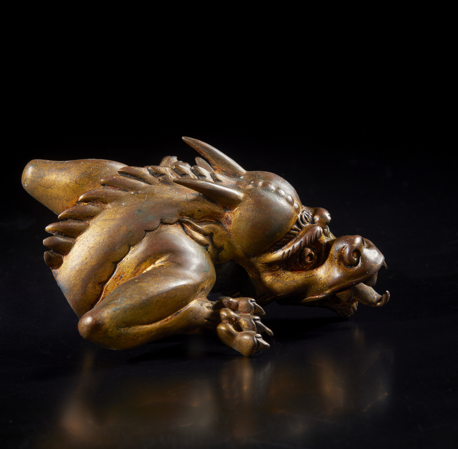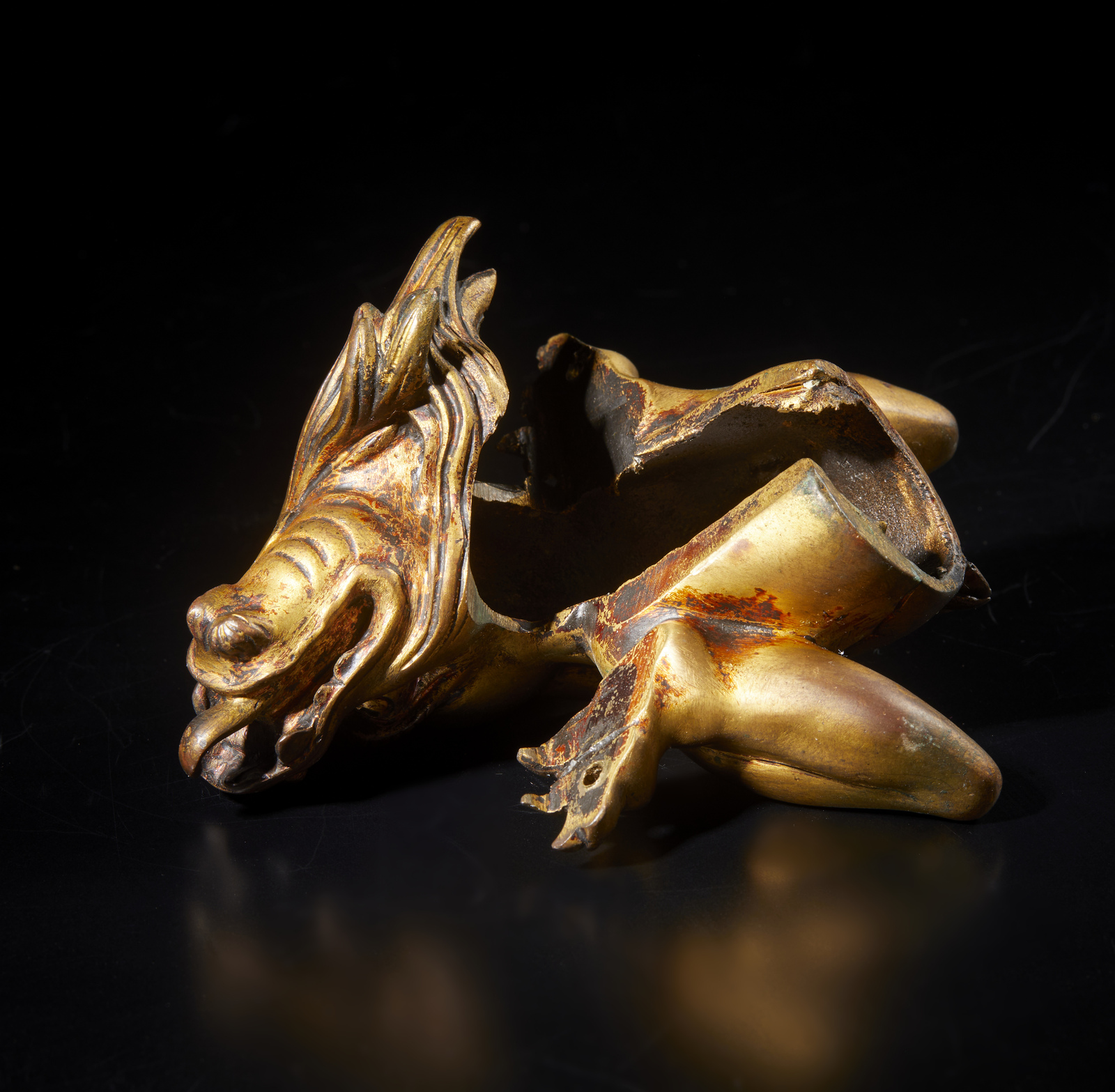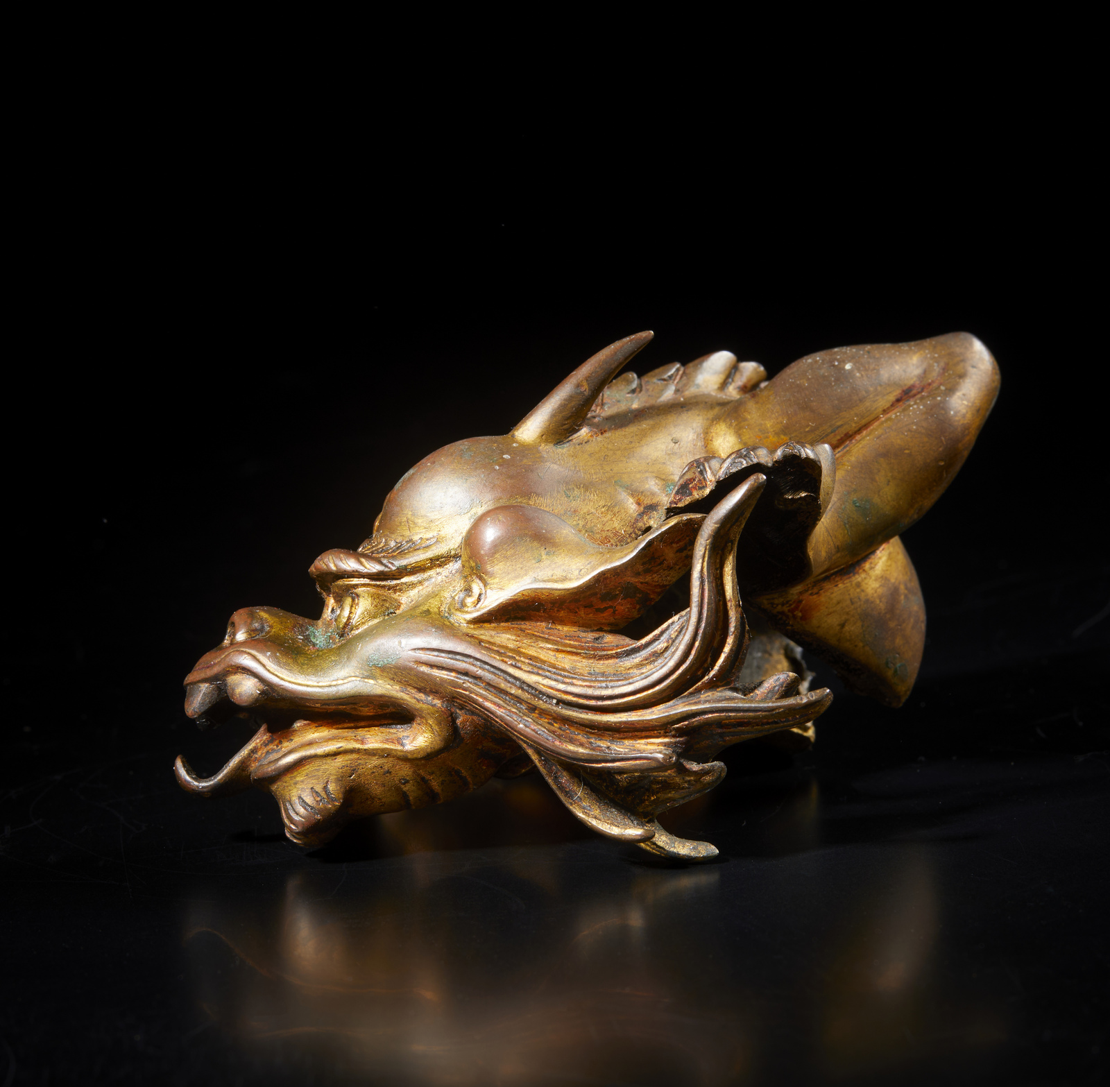 Arte Cinese - Porzione di manico in bronzo raffigurante drago Cina, dinastia Qing, XVIII secolo .