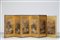 Cina, dinastia Ming, XVI-XVII secolo . . Cm 47,00 x 87,00. Su telaio in legno, ogni pannello mostra una raffinata pittura su tela raffigurante personaggi nella natura, su fondo dorato. Trattasi probabilmente di episodi della vita di Pindola, uno dei famosi discepoli di Buddha .