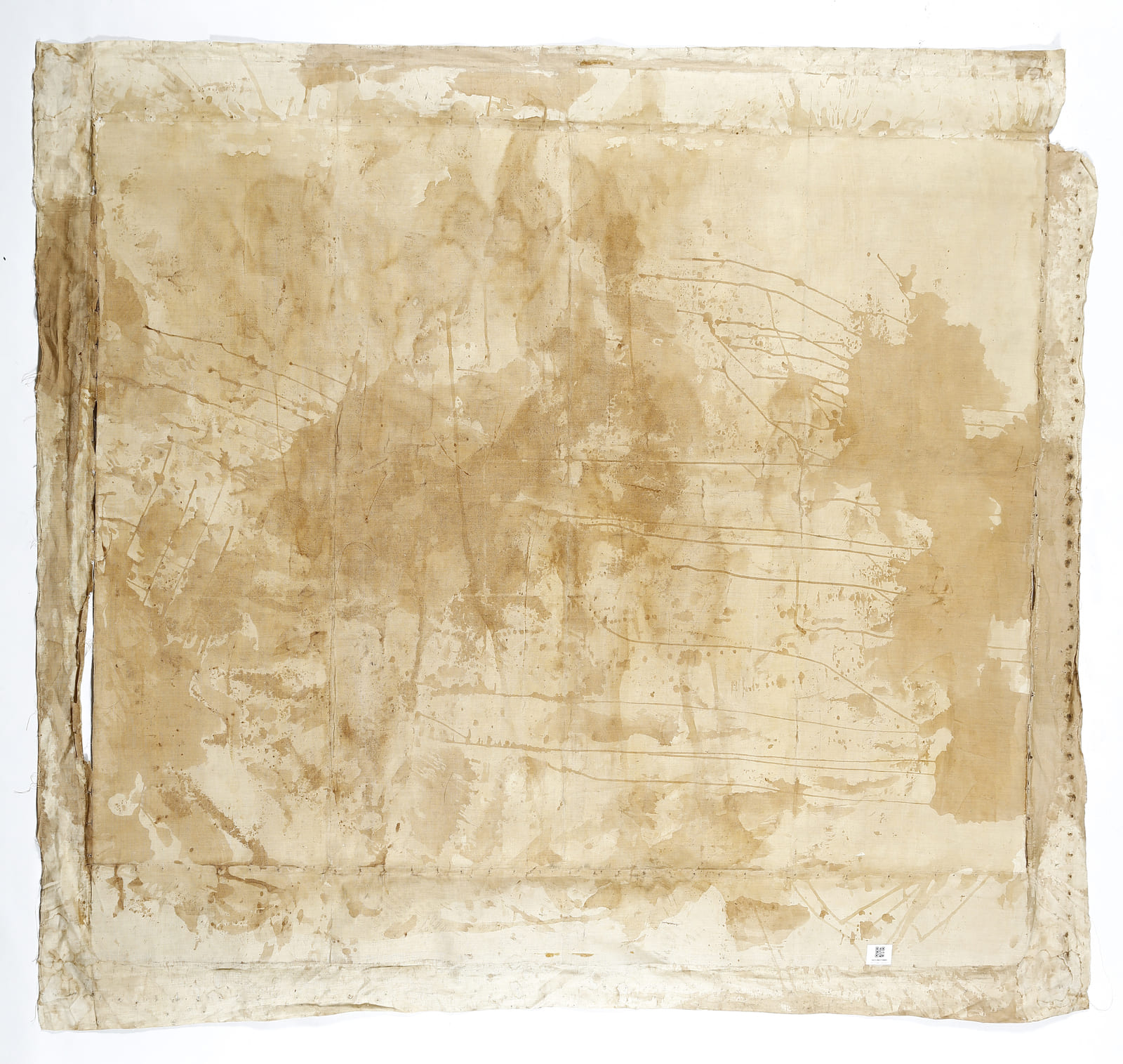 . . Cm 136,00 x 190,50. dipinto di grandi dimensioni formato da quattro rotoli verticali affiancati realizzati a tempera su tela a formare l'immagine di un albero di pesco con rami fioriti, uccelli e farfalle.