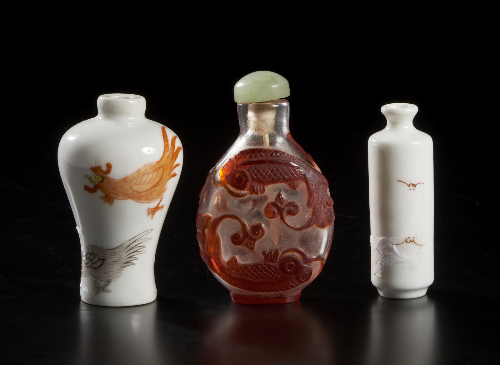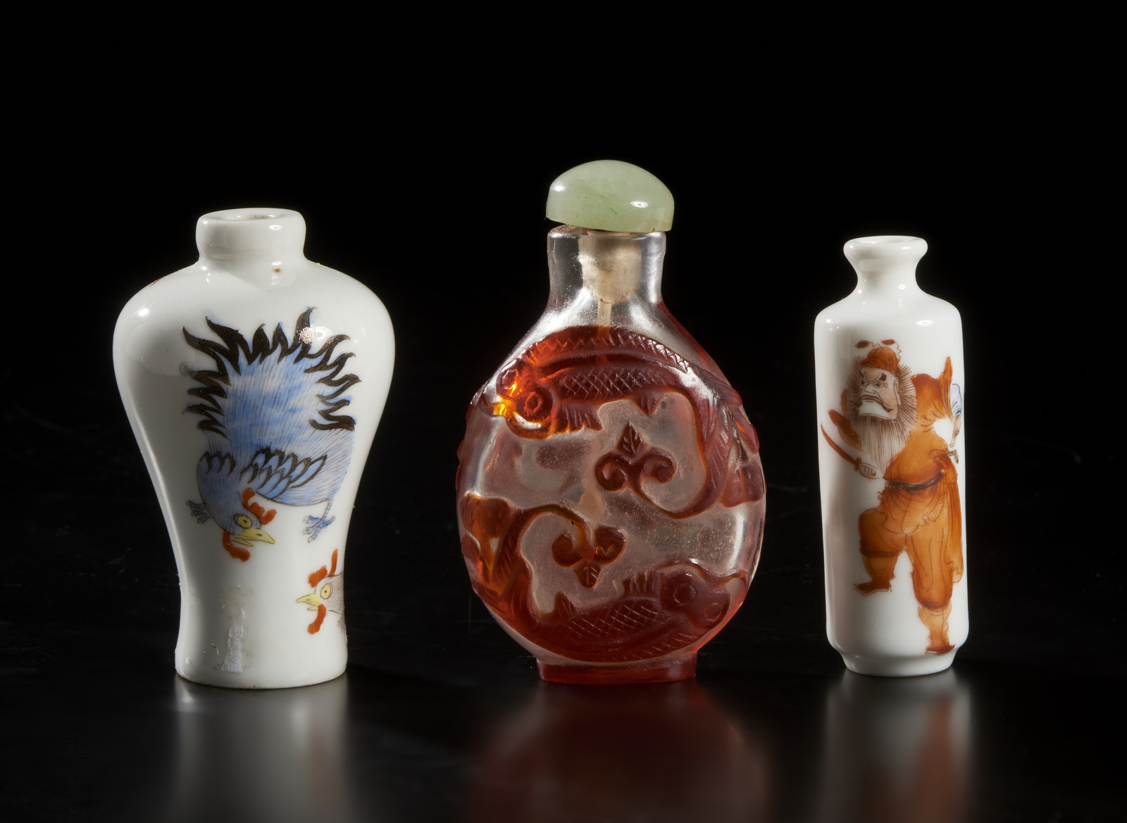 Arte Cinese - Tre snuff bottles Cina, Repubblica, prima metà XX secolo .