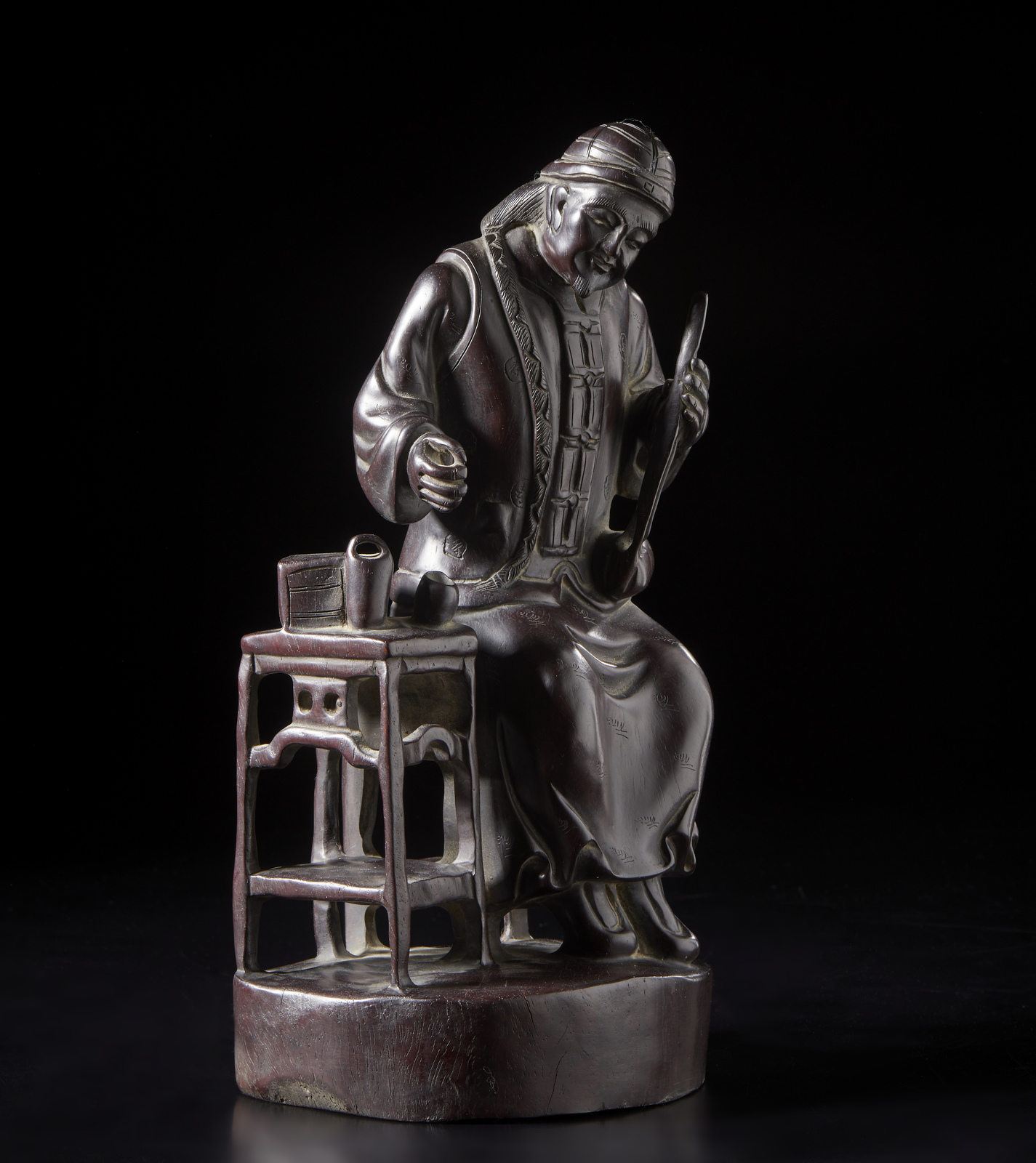 Arte Cinese Scultura in zitan raffigurante mestierante