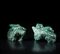 Arte Cinese Coppia di intagli in malachite grezza a forma di lepri