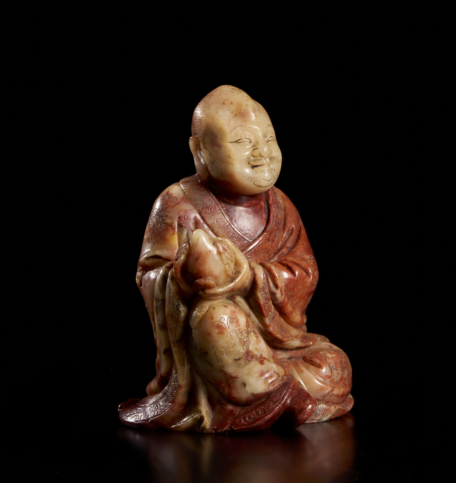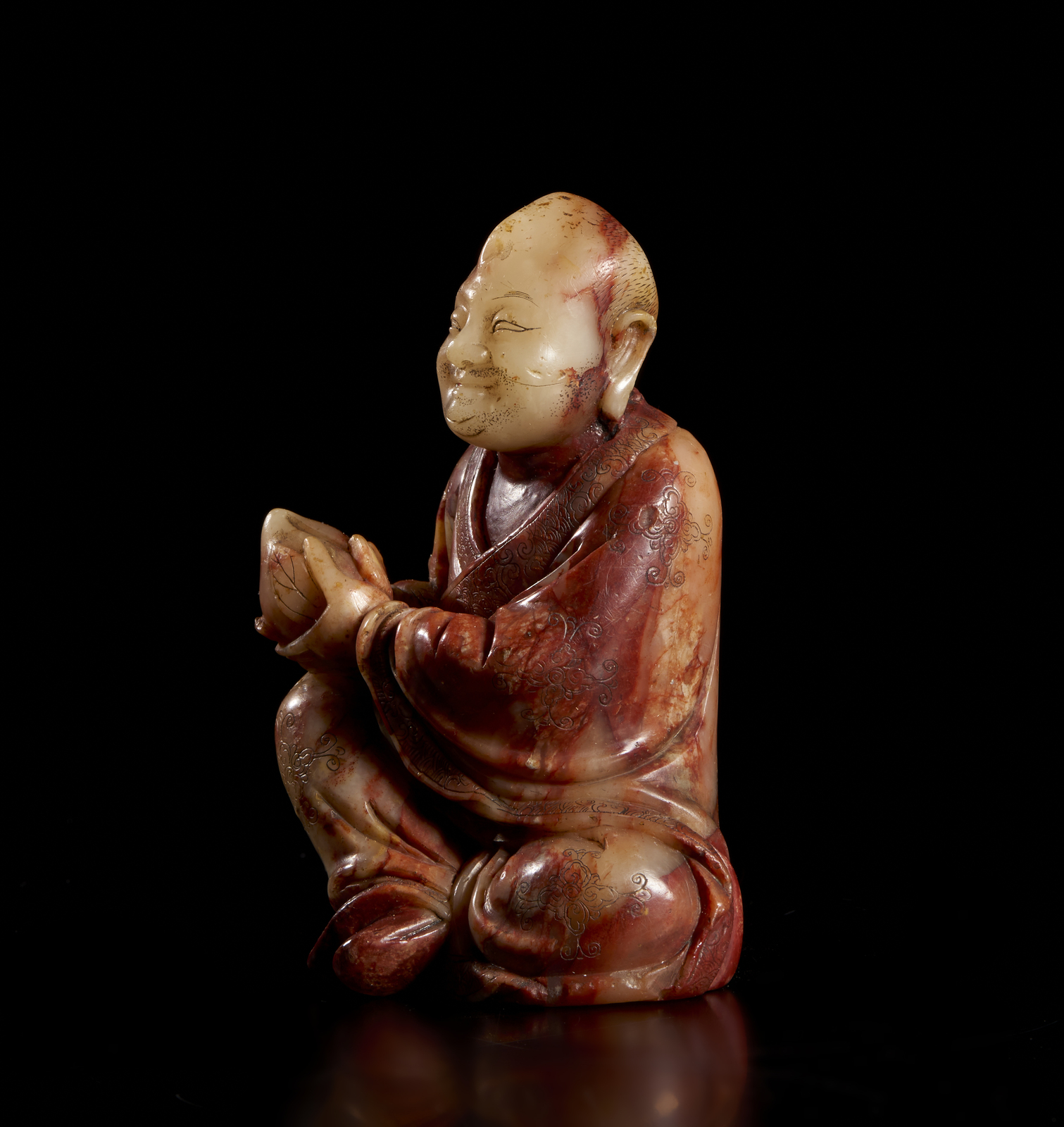 Cina, Qing, XIX secolo. . Cm 7,00 x 10,00. figura di luohan assiso.