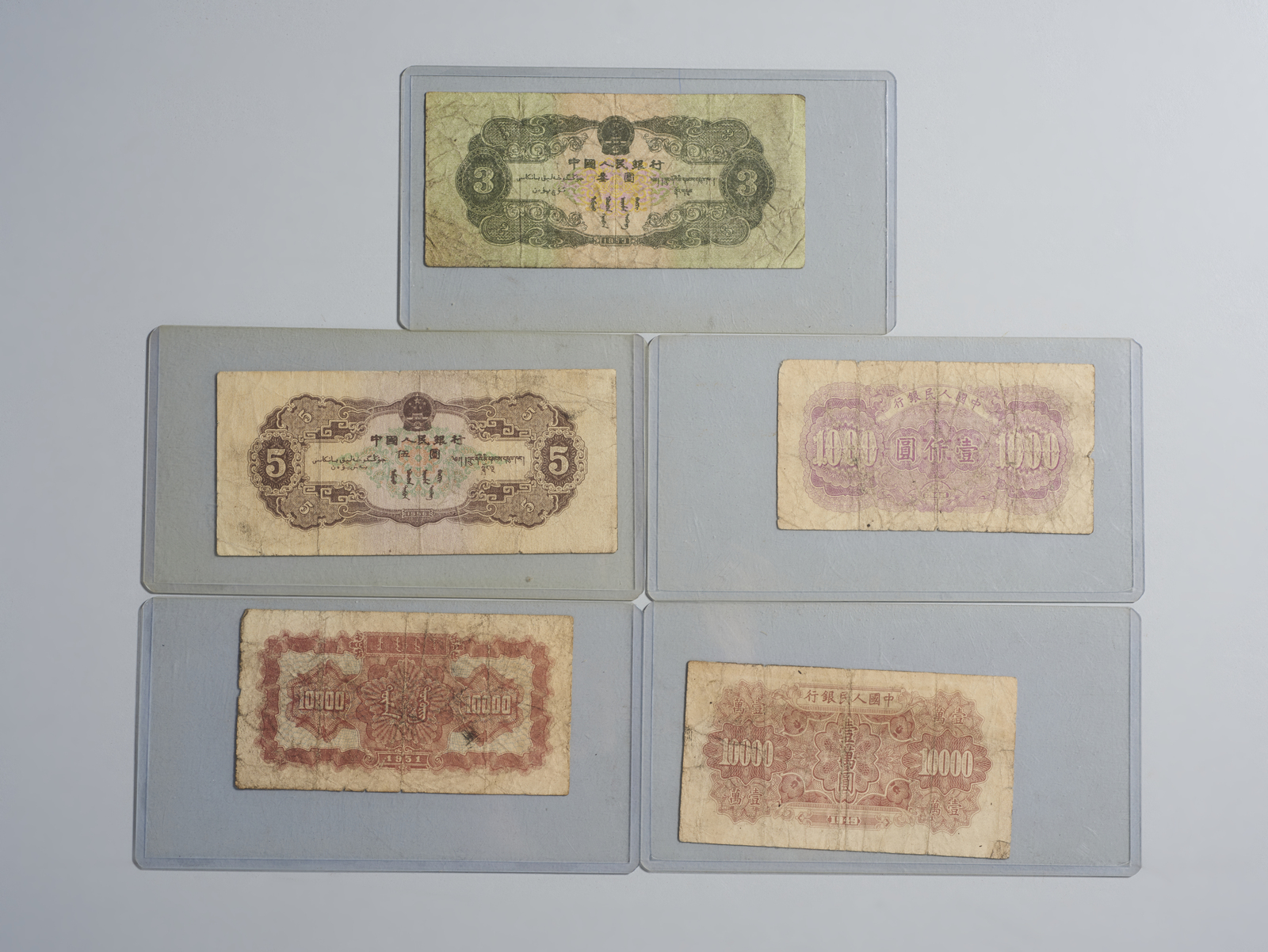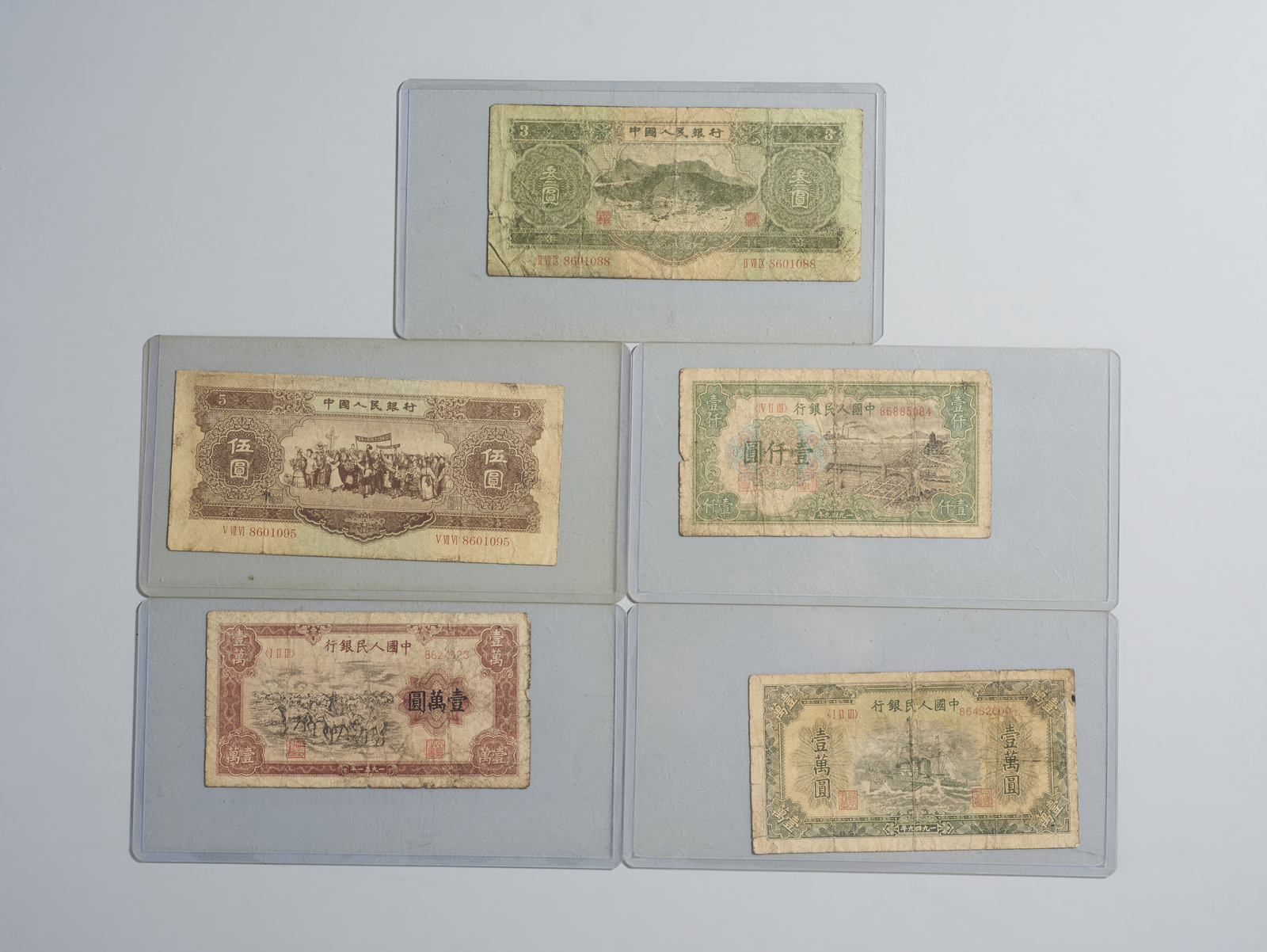 Arte Cinese - Cinque banconote Cina, Repubblica Popolare Cinese, XX secolo .