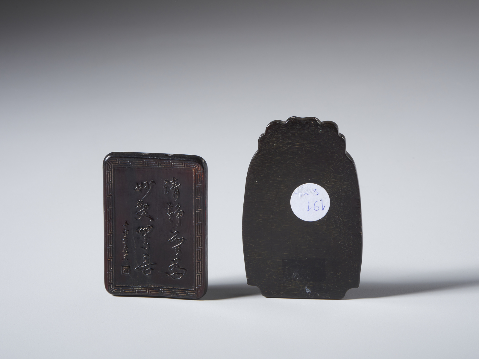 Arte Cinese - Due placchette in corno Cina, Qing, XIX secolo .