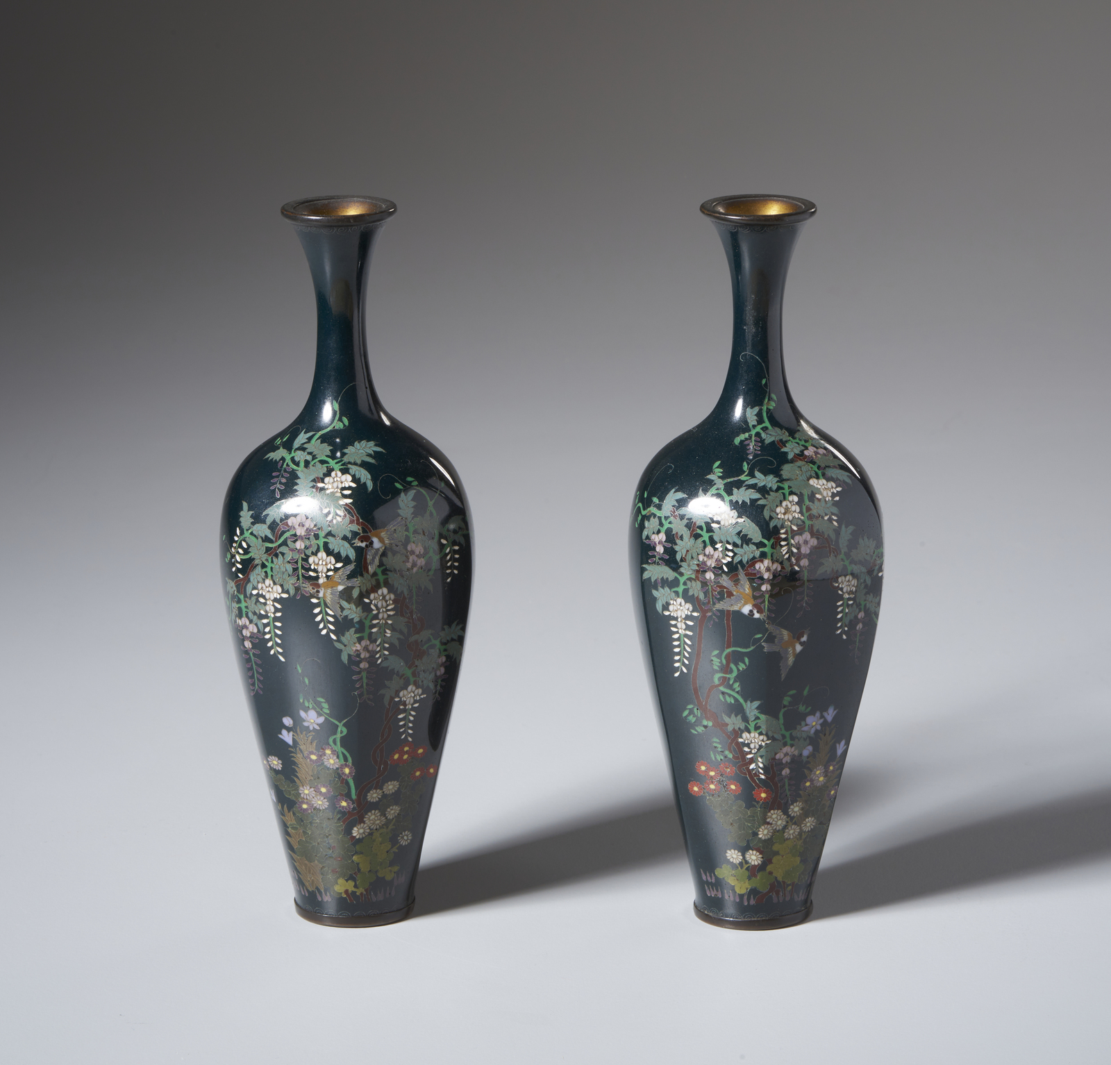 Arte Giapponese - Coppia di vasi cloisonné Giappone, XX secolo .
