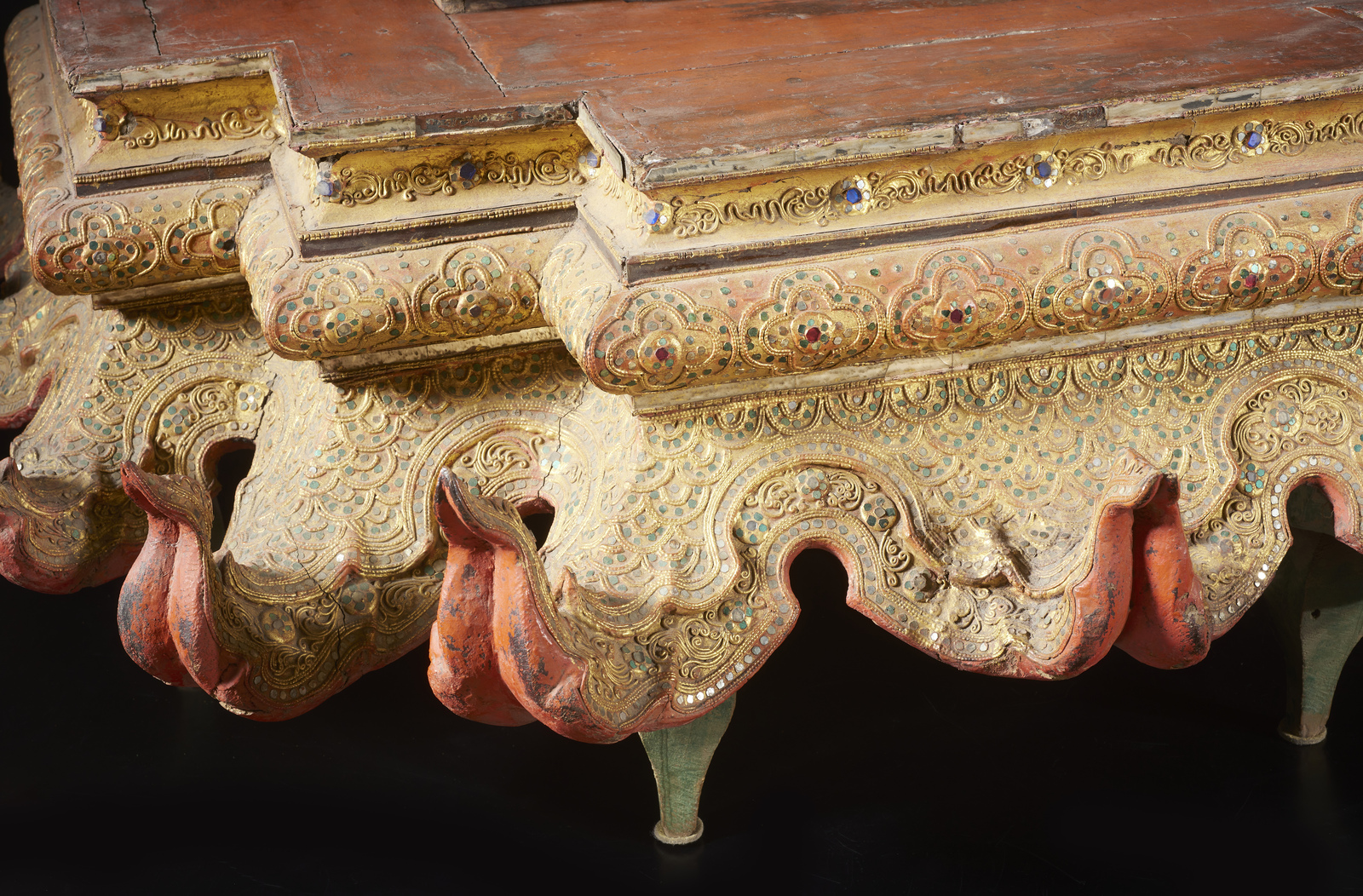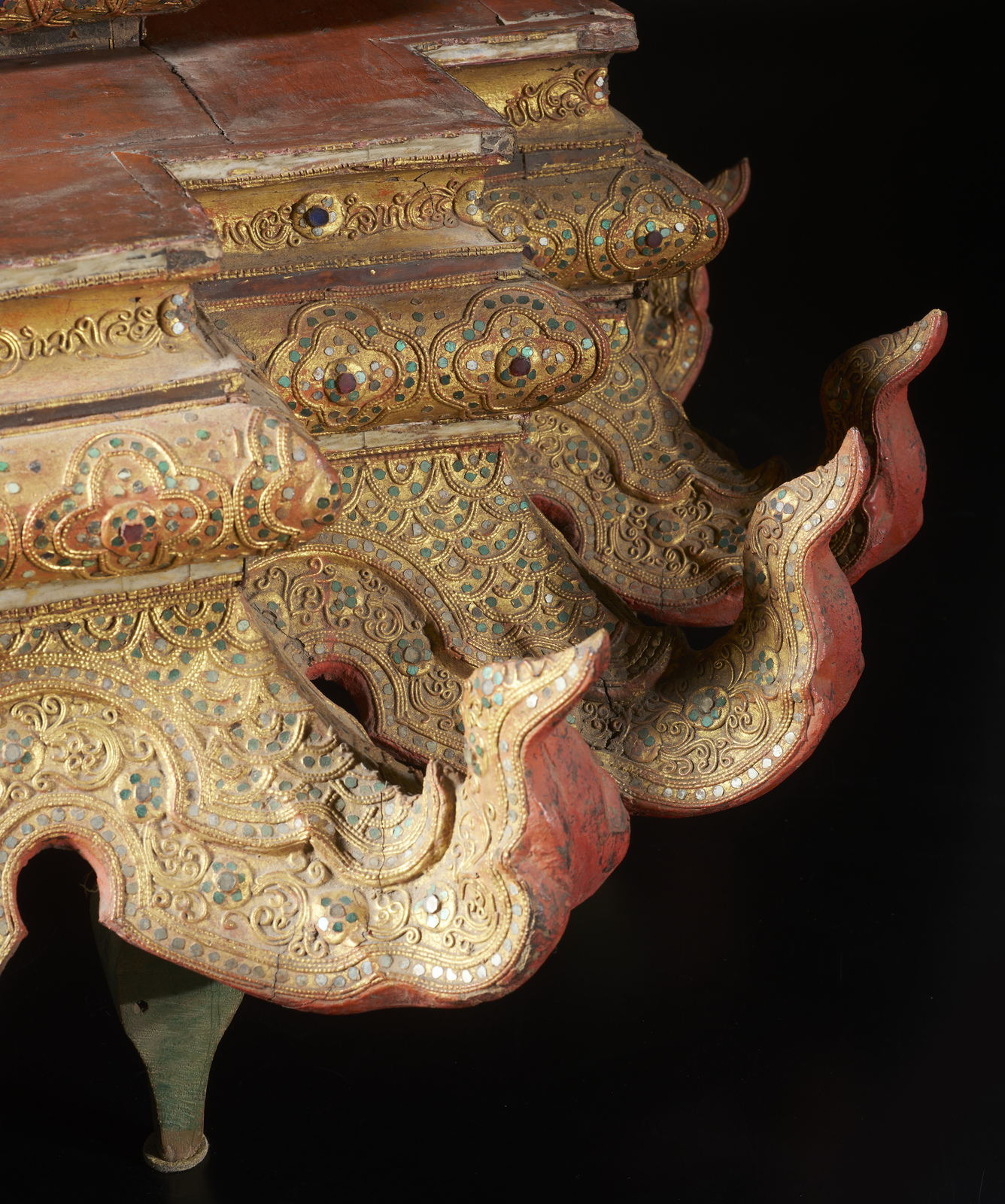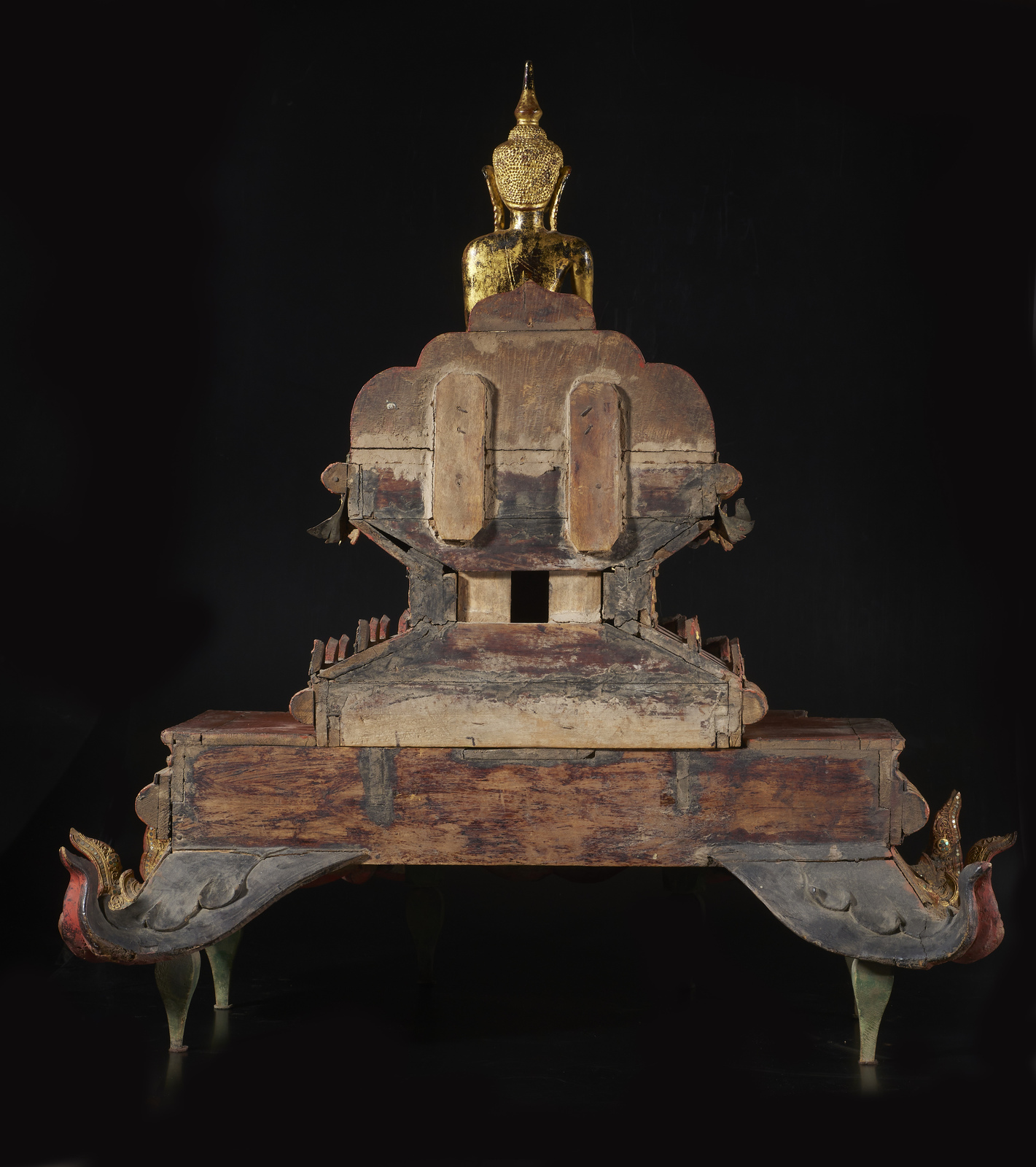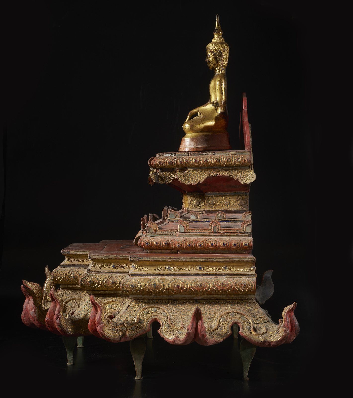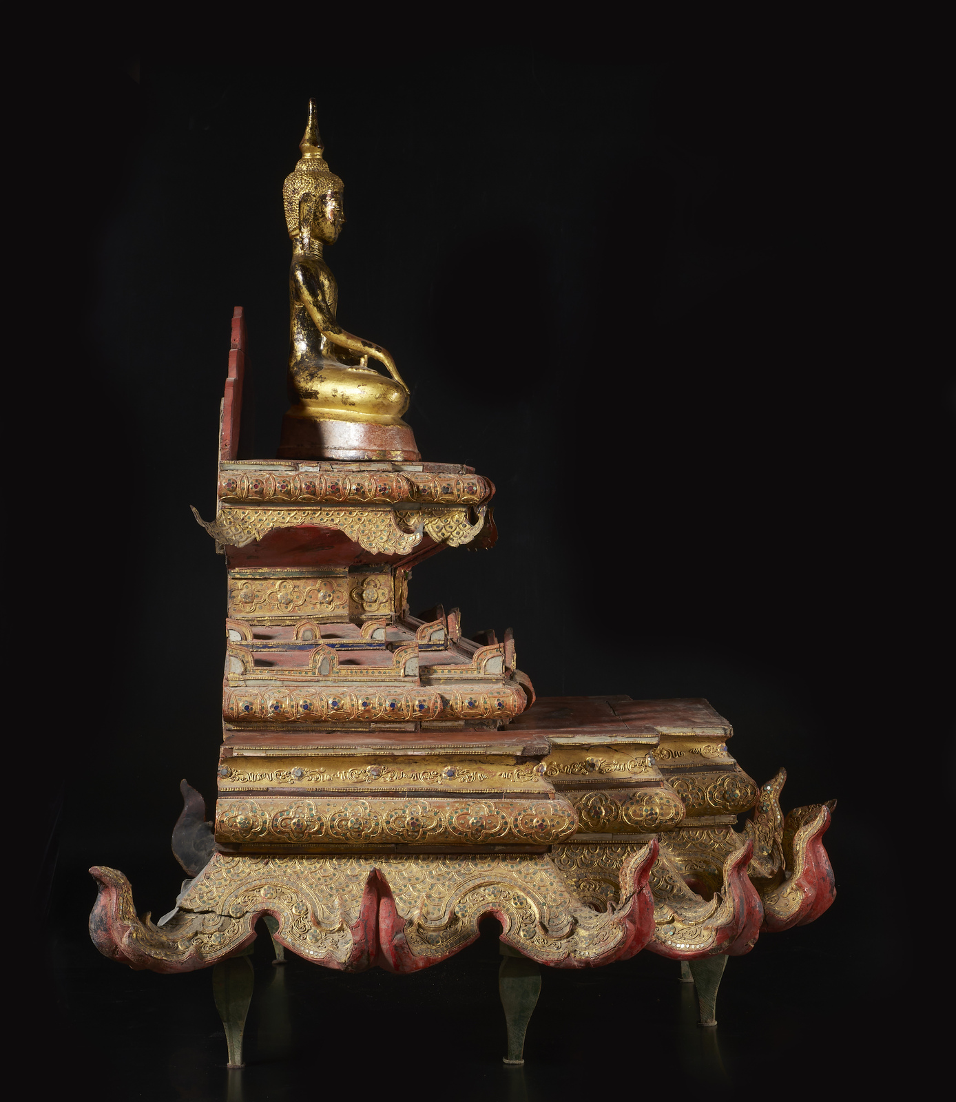 Arte Sud-Est Asiatico - Figura di Buddha su altare Birmania, XVIII - XIX secolo .