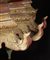 Birmania, XVIII - XIX secolo . . Cm 28,00 x 43,50. Lotto composto da una scultura in legno dorato e laccato raffigurante il Buddha storico seduto in padmasana; la sua mano destra in bhumisparsamudra, la sinistra in dhyanamudra. La figura poggia su un altare non coevo, in legno laccato e dorato, su due livelli ed abbellito da piedi ritorti a formare un decoro simile a fiamme.