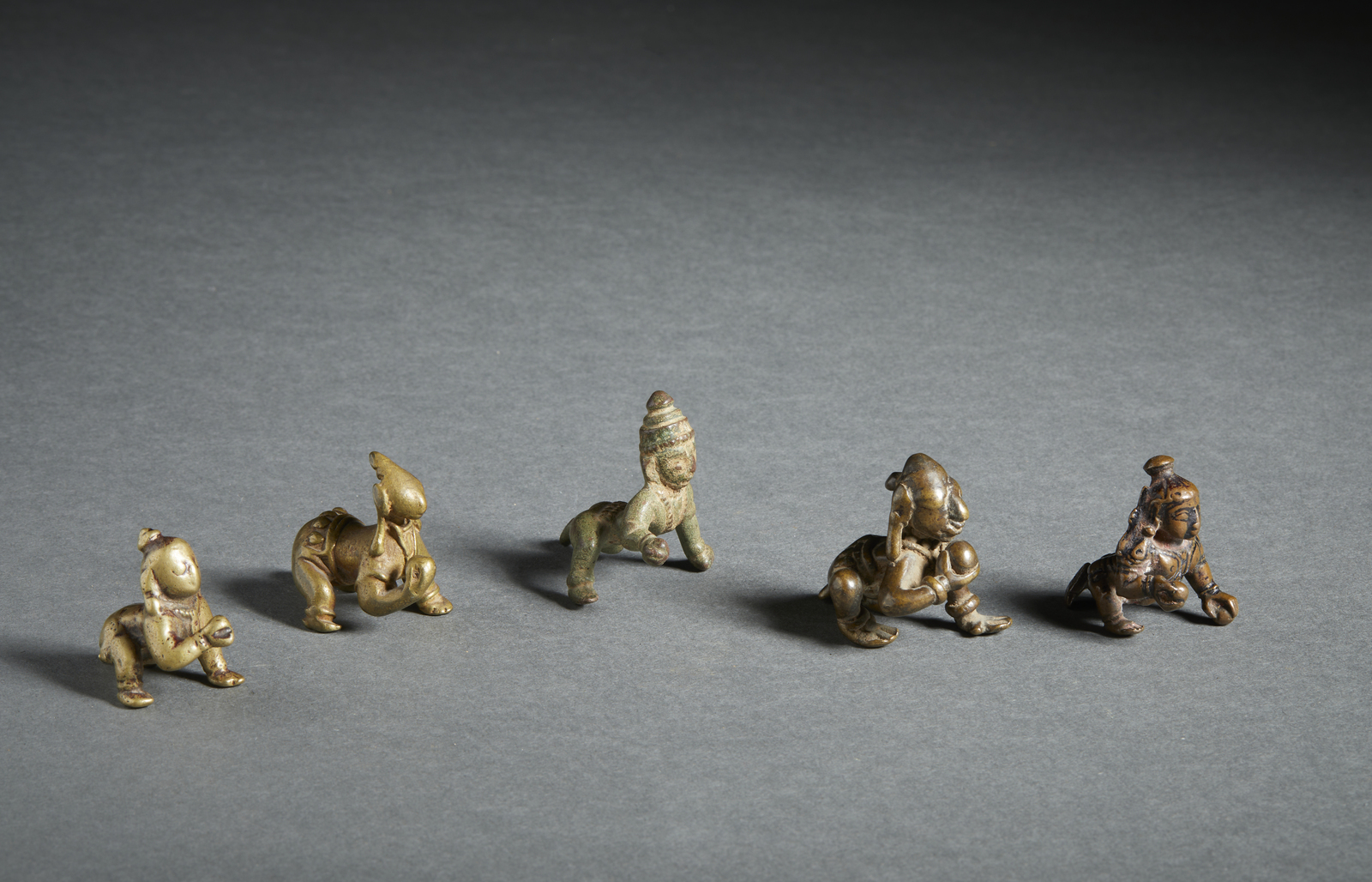 Arte Indiana - Gruppo di 5 Balakrishna in lega di rame India, XVIII-XIX secolo .