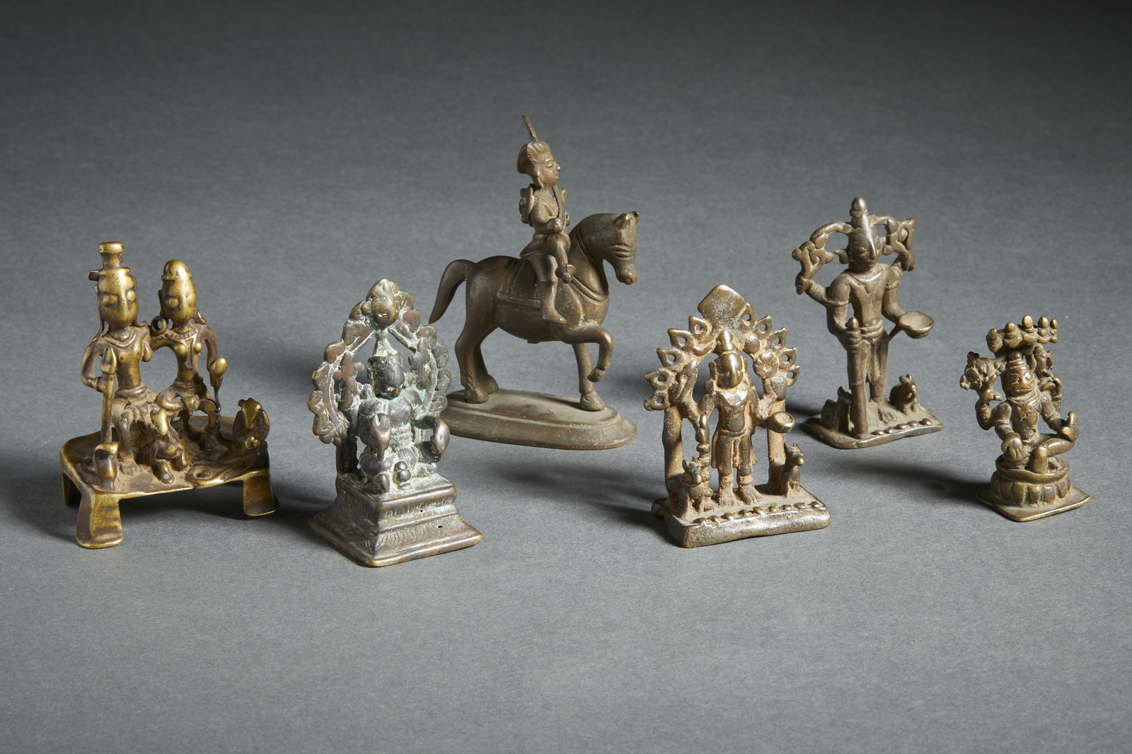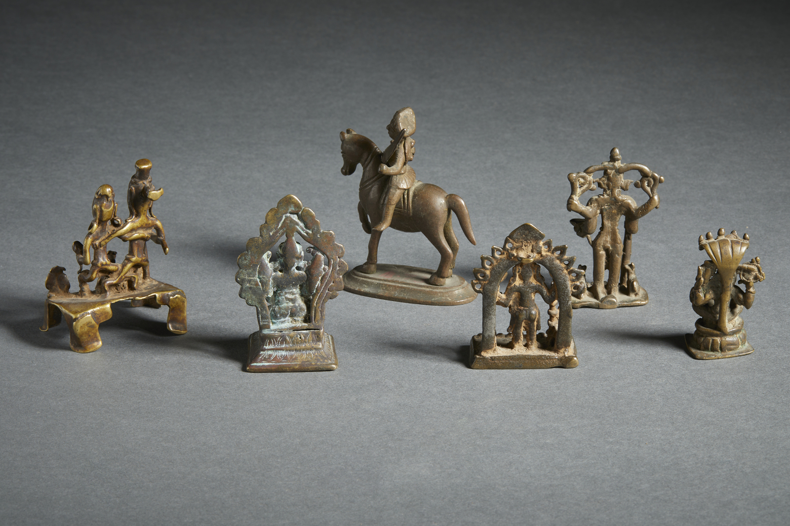 Arte Indiana - Gruppo di sei bronzi devozionali raffiguranti varie divinità India, XVIII - XIX secolo .