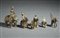 Arte Indiana Gruppo di 6 cavalieri in bronzo