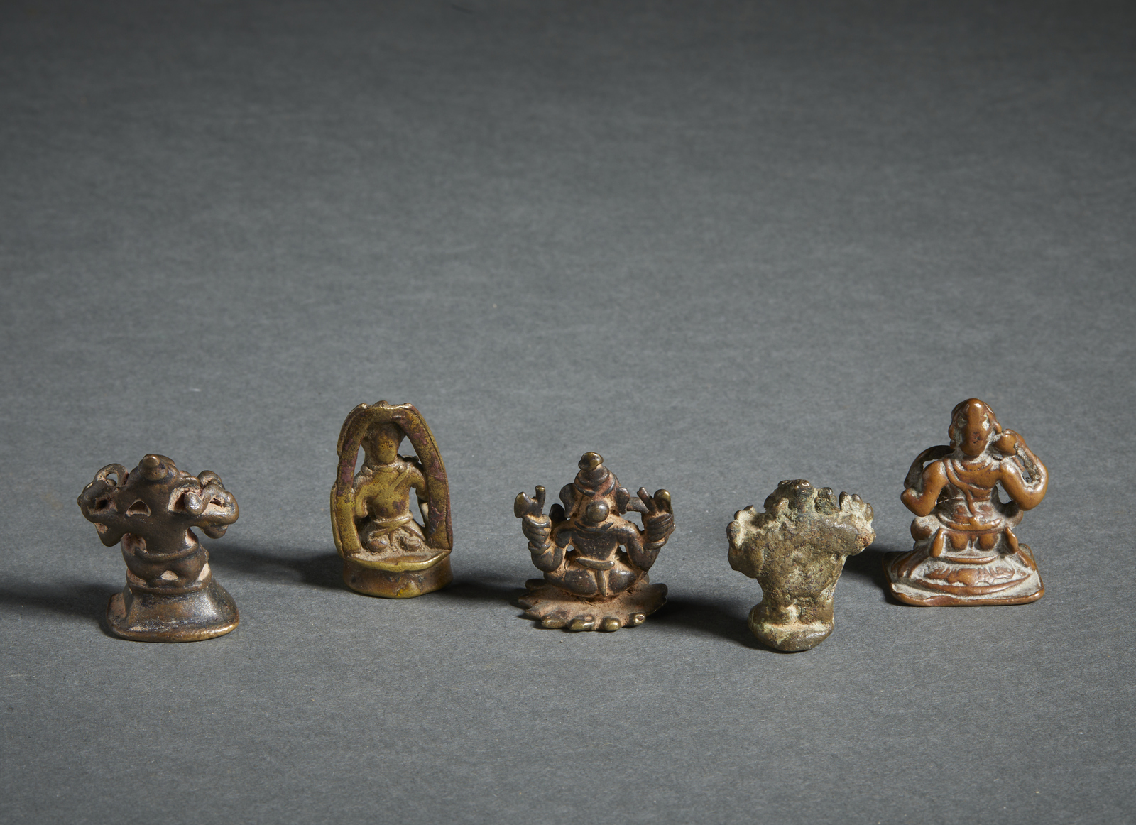 Arte Indiana - Gruppo di 5 figure in lega di rame raffiguranti Ganesh India, XVIII-XIX secolo .