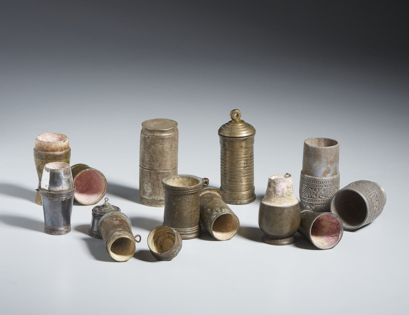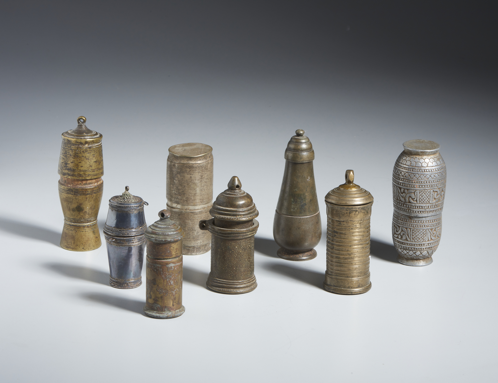 Arte Indiana - Gruppo di 8 contenitori per calce India, XIX-XX secolo .