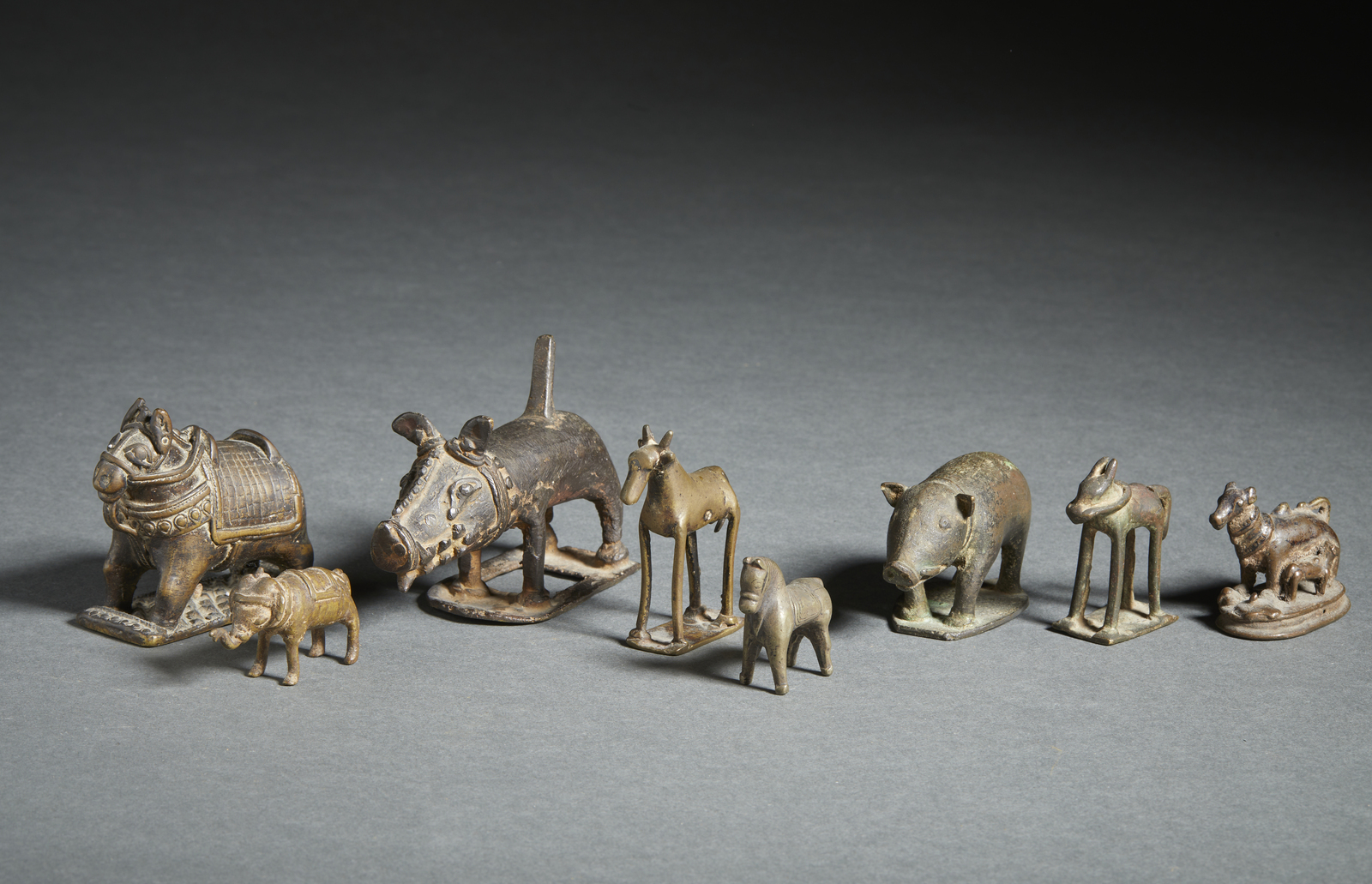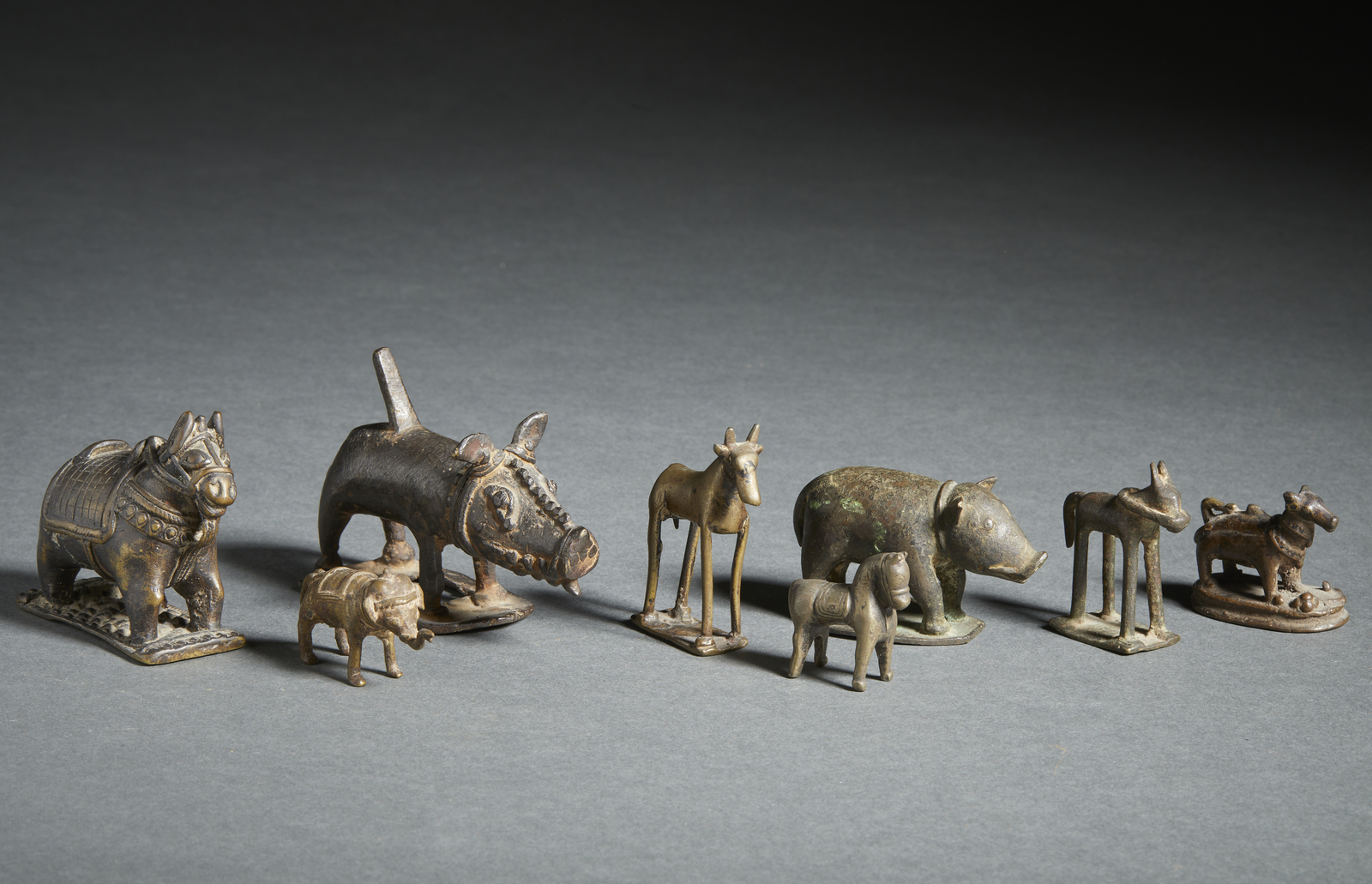 Arte Indiana - Gruppo di 8 figure zoomorfe in bronzo India Popolare, XIX-XX secolo .